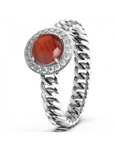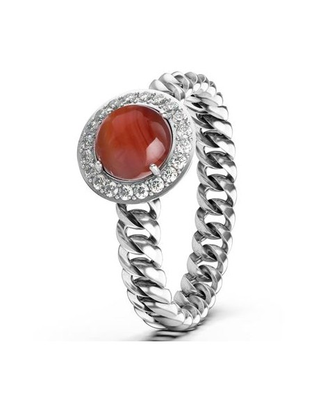 Anello in Argento (925) con Corniola Rossa Cabochon e Zirconi bianchi - Gioielli Rosato