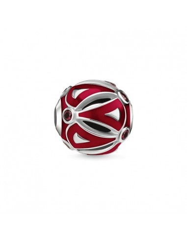 Lavorata a traforo e valorizzata da particolari in smalto rosso, questa Bead con motivi a triangolo raffigura l’armonia tra corpo, anima e mente.