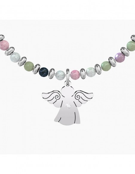 Con Lui al tuo fianco pi sicuro  il sentiero del tuo cammino. Affronta la vita libero di seguire il tuo istinto perchŽ avrai sempre accanto chi ti protegge. Bangle con filo armonico in acciaio, sfere in agata multicolor e ciondolo ad angelo.