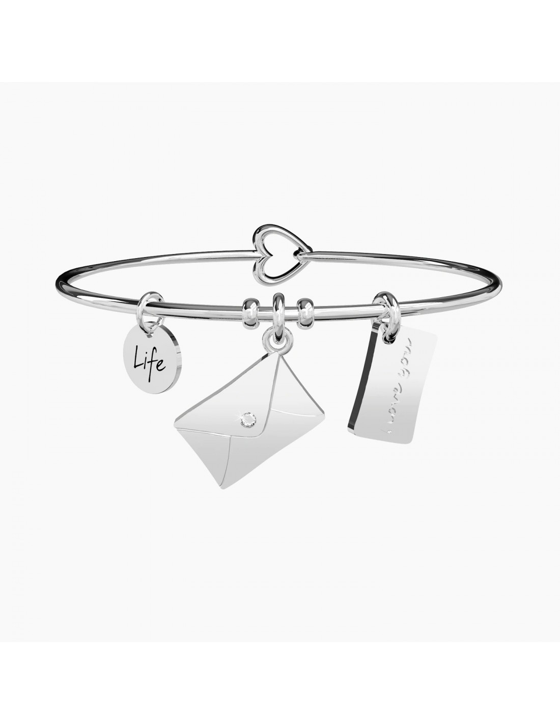 Se c' qualcosa che ancora non ti ho detto  perchŽ tutte le parole del mondo non bastano per descrivere quello che sentoÉ I Love You! Bangle in acciaio con ciondoli a forma di lettera.