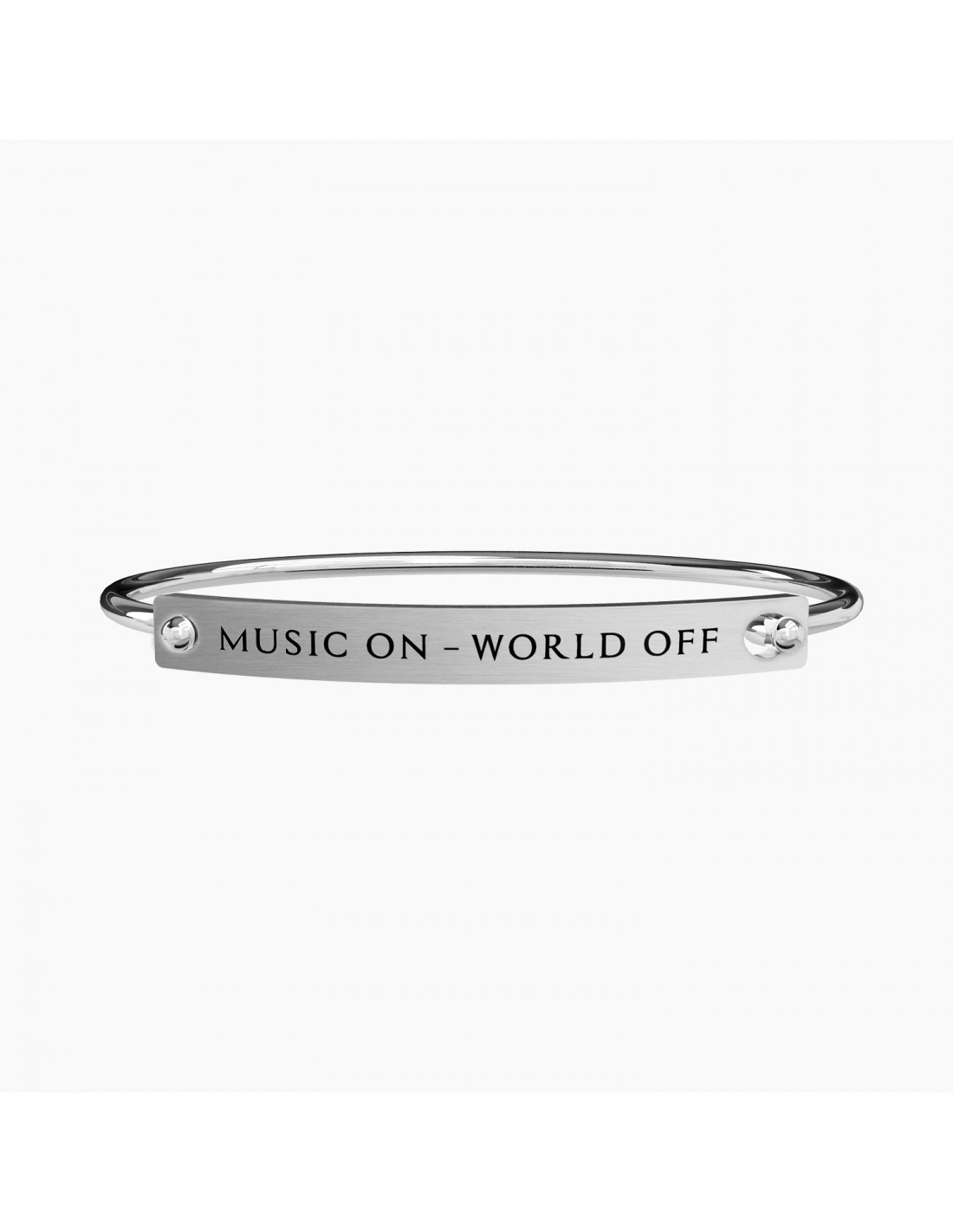Quando il mondo intorno fa troppo rumore, accendi la musica, alza il volume e spegni le preoccupazioni. Bangle in acciaio lucido con piastra rettangolare satinata.