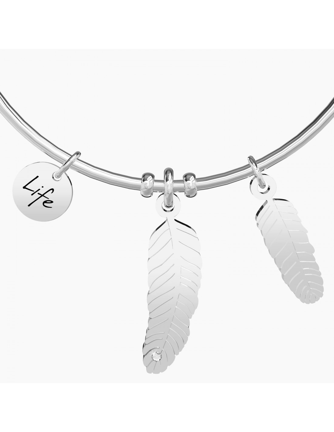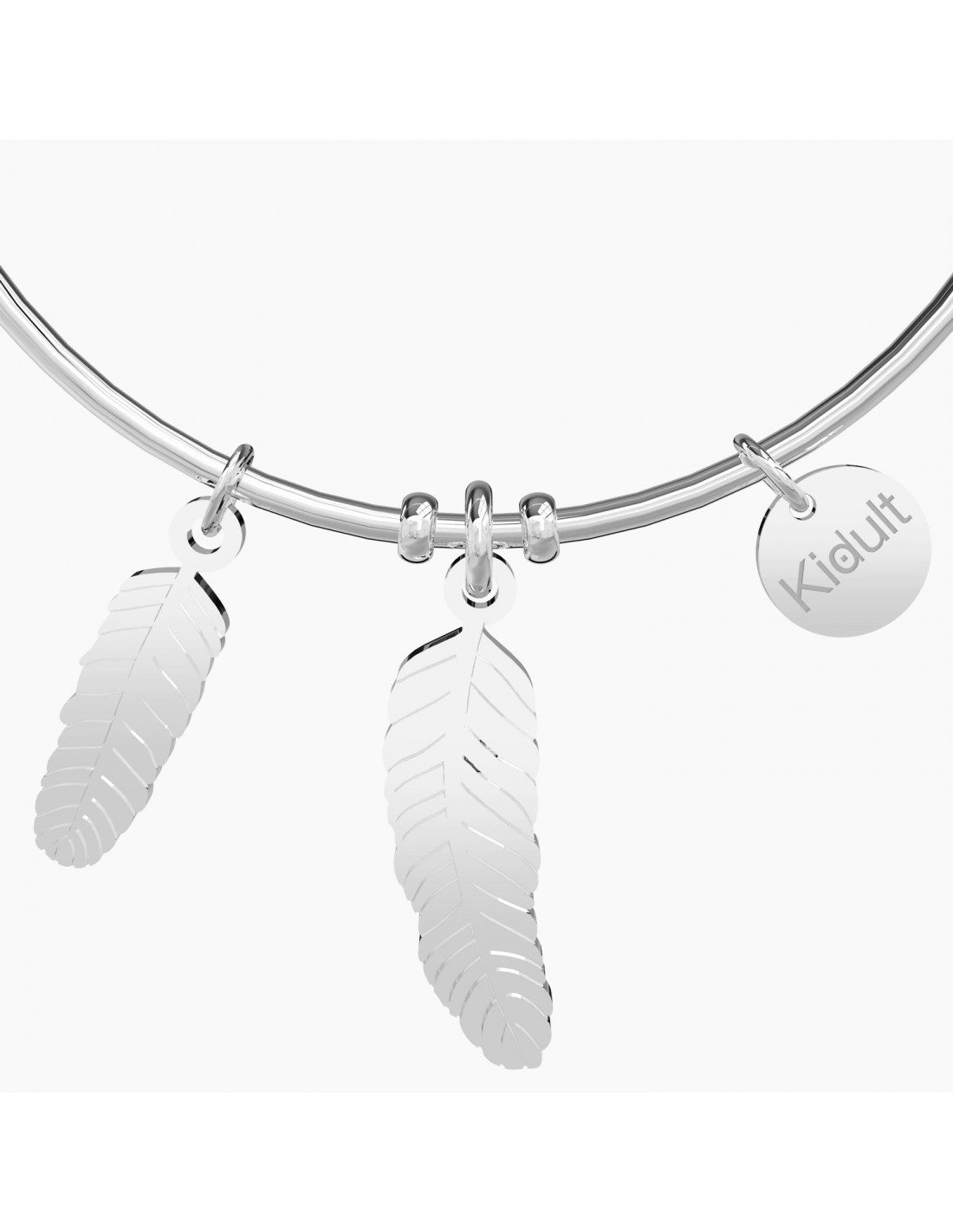 Sei un soffio di danza armoniosa che non sente alcun peso, sospesa nell'aria sopra ogni cosa. Il tuo volo  il sogno a occhi aperti di chi vive con serenitˆ. Bangle in acciaio con ciondolo Piuma.