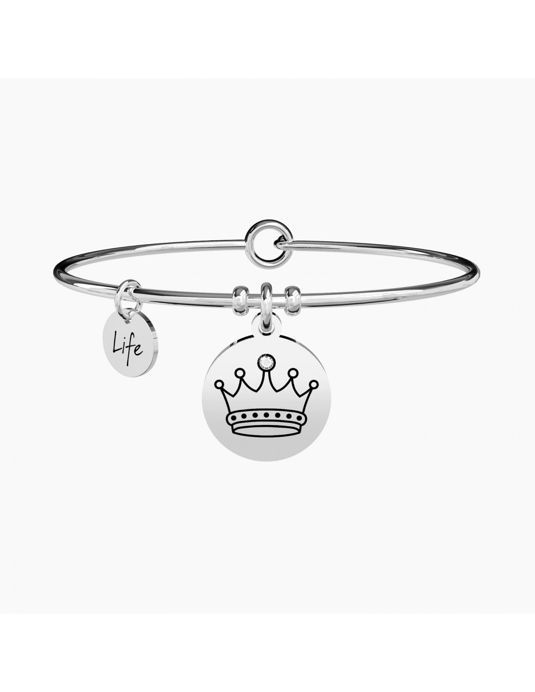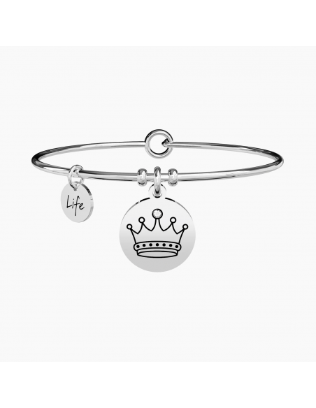 Forte, intelligente e coraggiosa. Sei nata per essere regina, per guidare chi ti sta accanto nelle avventure della vita. Bangle in acciaio con ciondolo tondo.