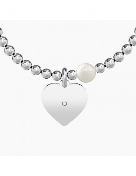 Bangle in acciaio con ciondolo a cuore e piccolo ciondolo con perla coltivata.