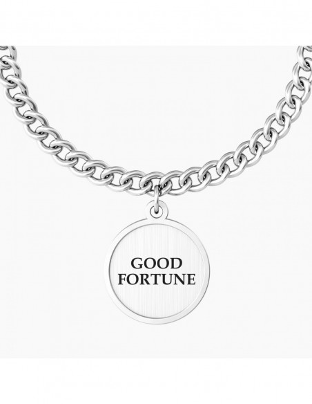 Una mano contro ogni negativitˆ, una mano per aiutarti a realizzare i tuoi sogni. Buona fortuna! Bracciale in acciaio con catena groumette "comfort fit" e ciondolo satinato tondo con rifinitura borchiata e cristallo.