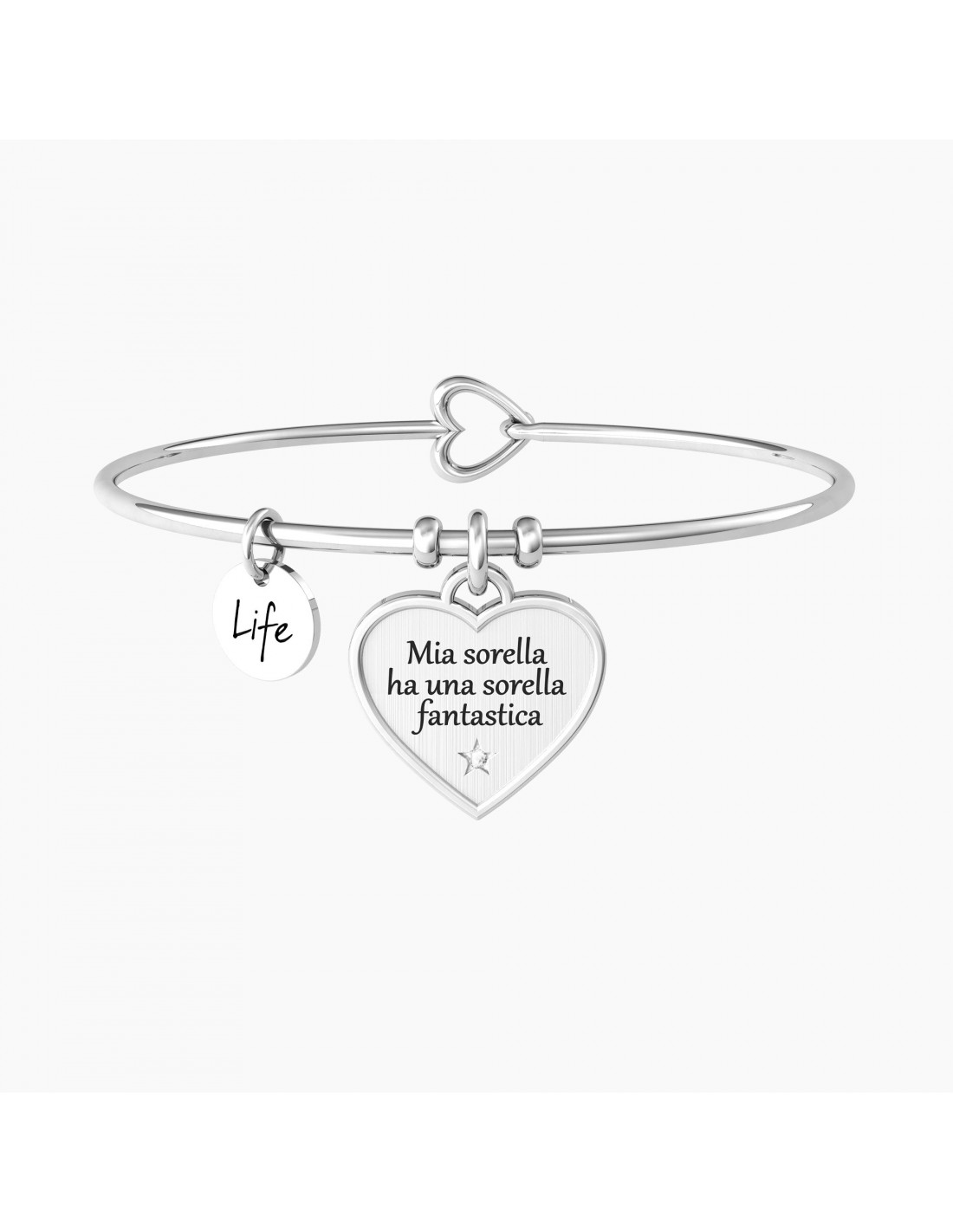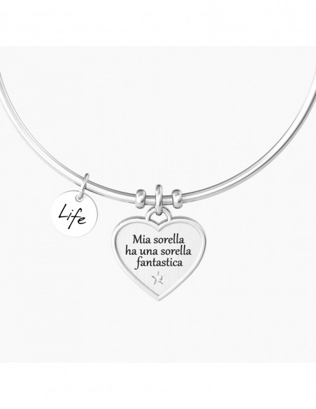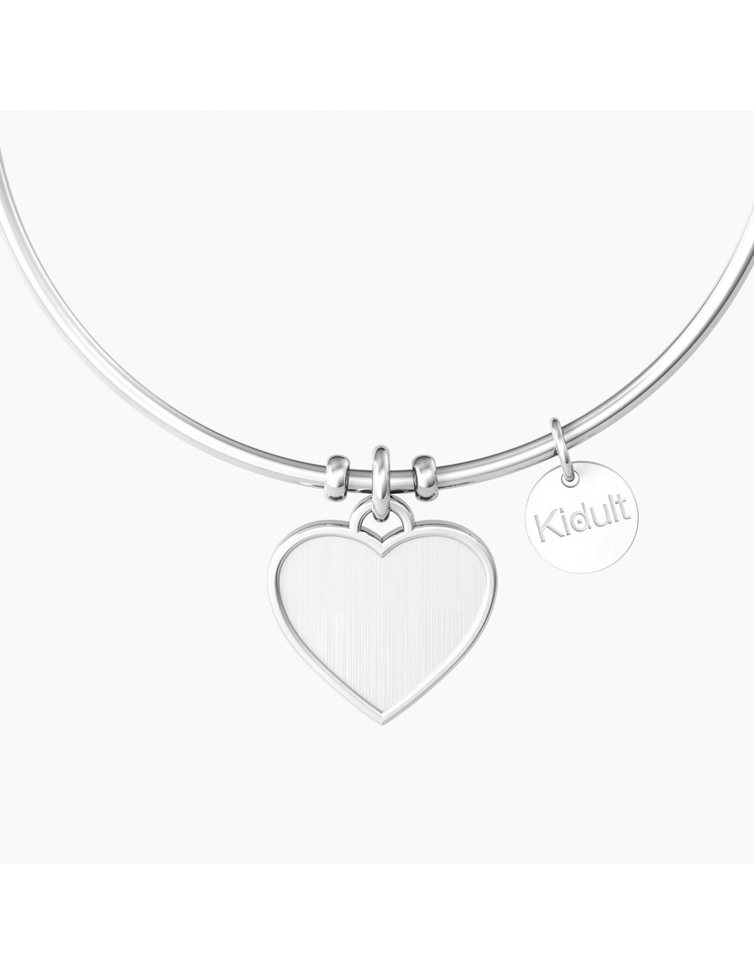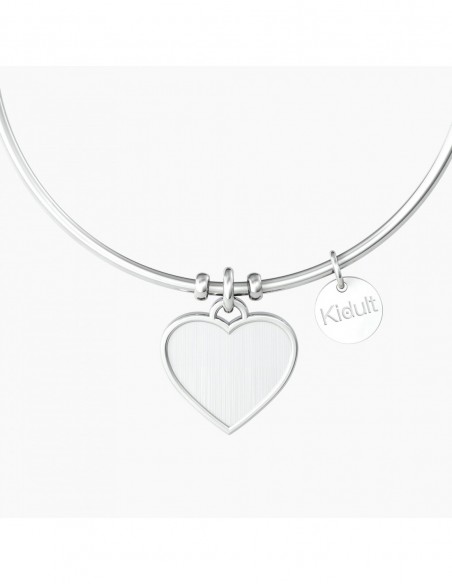 Bangle in acciaio con ciondolo satinato a cuore con rifinitura lucida e cristallo.