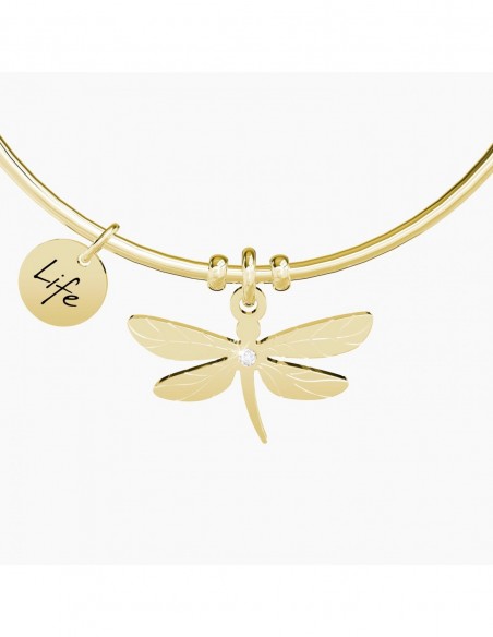 Bangle in acciaio color oro giallo con ciondolo Libellula.