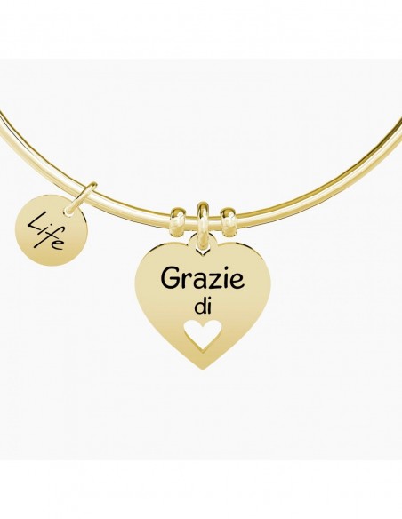 Bangle in acciaio color oro giallo con ciondolo a cuore.