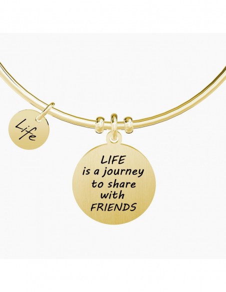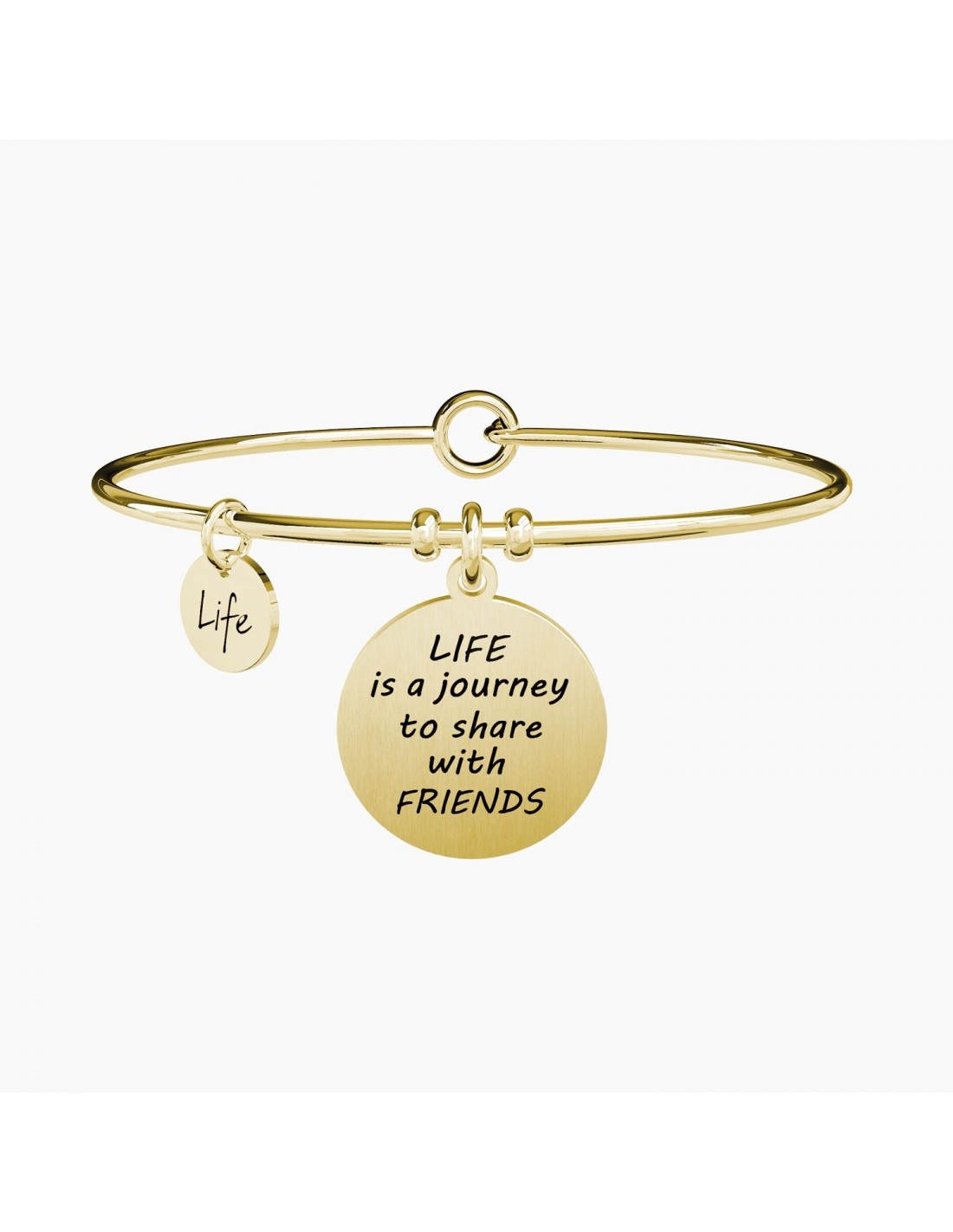 Life is a journey to share with friends La vita  un viaggio da condividere con gli amici Bangle in acciaio color oro giallo con ciondolo Vita.