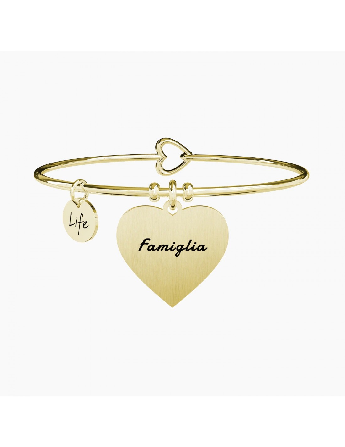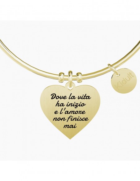 Dove la vita ha inizio e l'amore non finisce mai Famiglia: dove la vita ha inizio e l'amore non finisce mai Bangle in acciaio color oro giallo con ciondolo satinato a cuore.