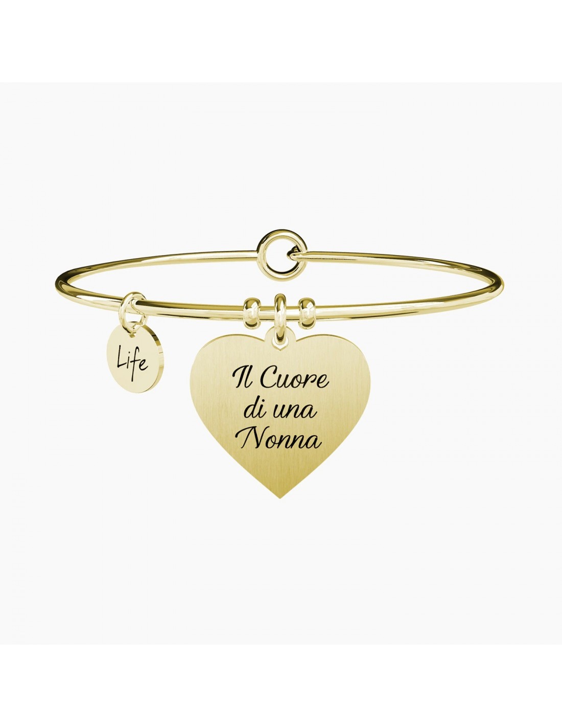 Il cuore di una nonna  amare senza confini. E viziare senza limiti! Il cuore di una nonna  Amore senza confini Bangle in acciaio color oro giallo con ciondolo satinato a cuore.