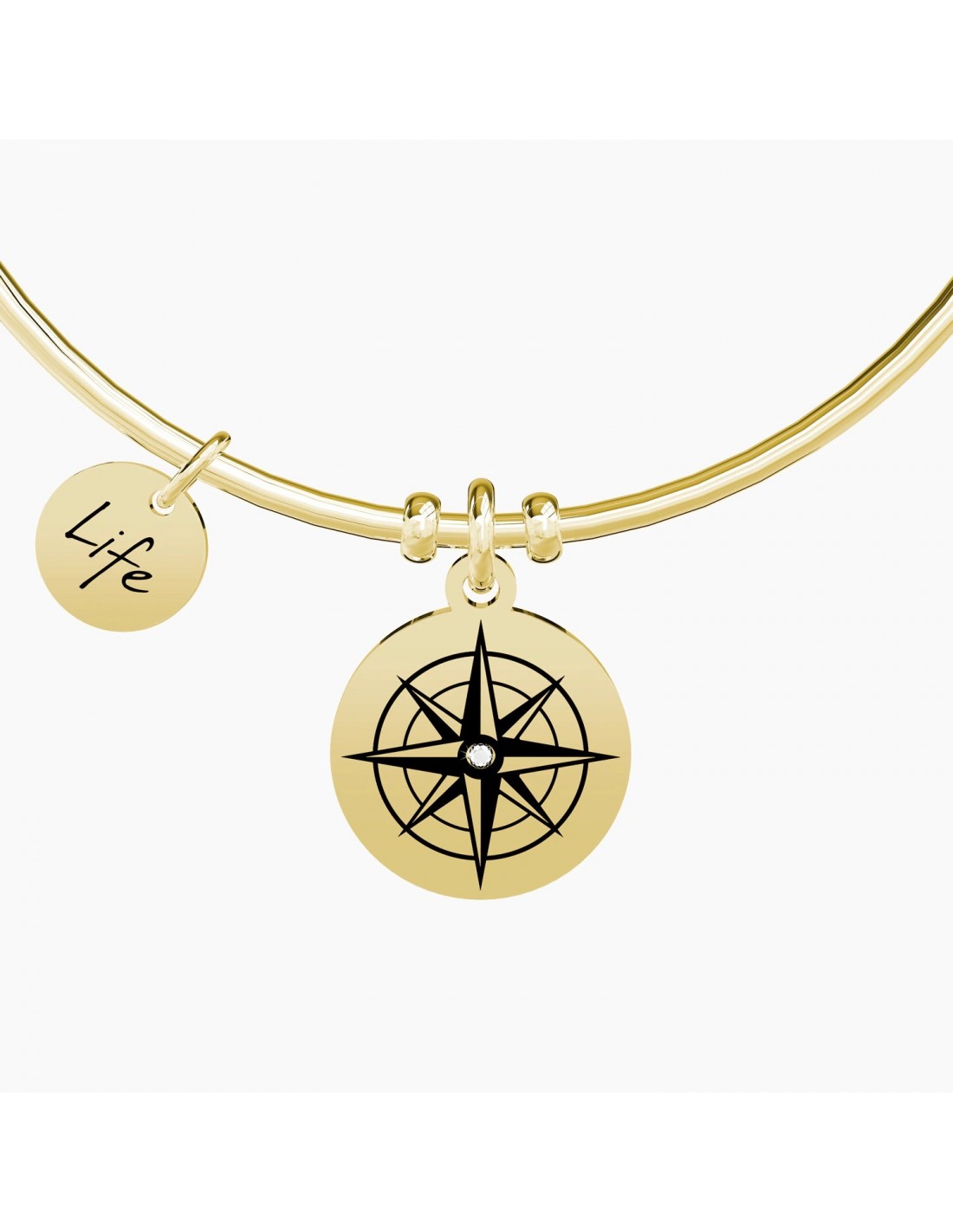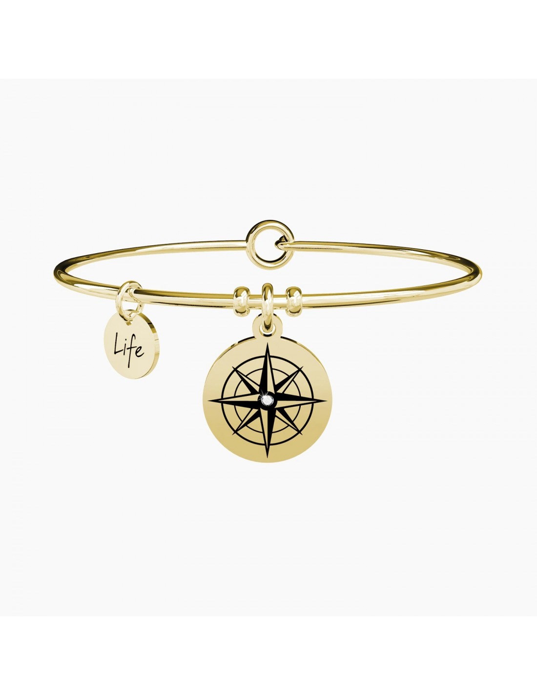 Bangle in acciaio color oro giallo con ciondolo Rosa dei venti.