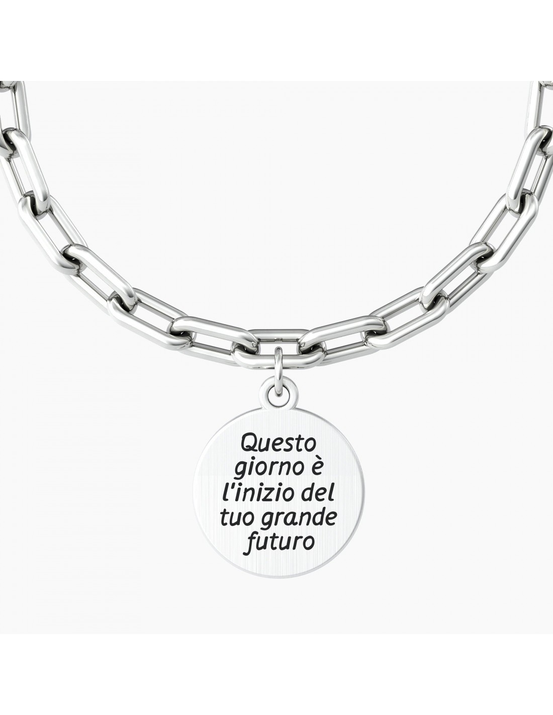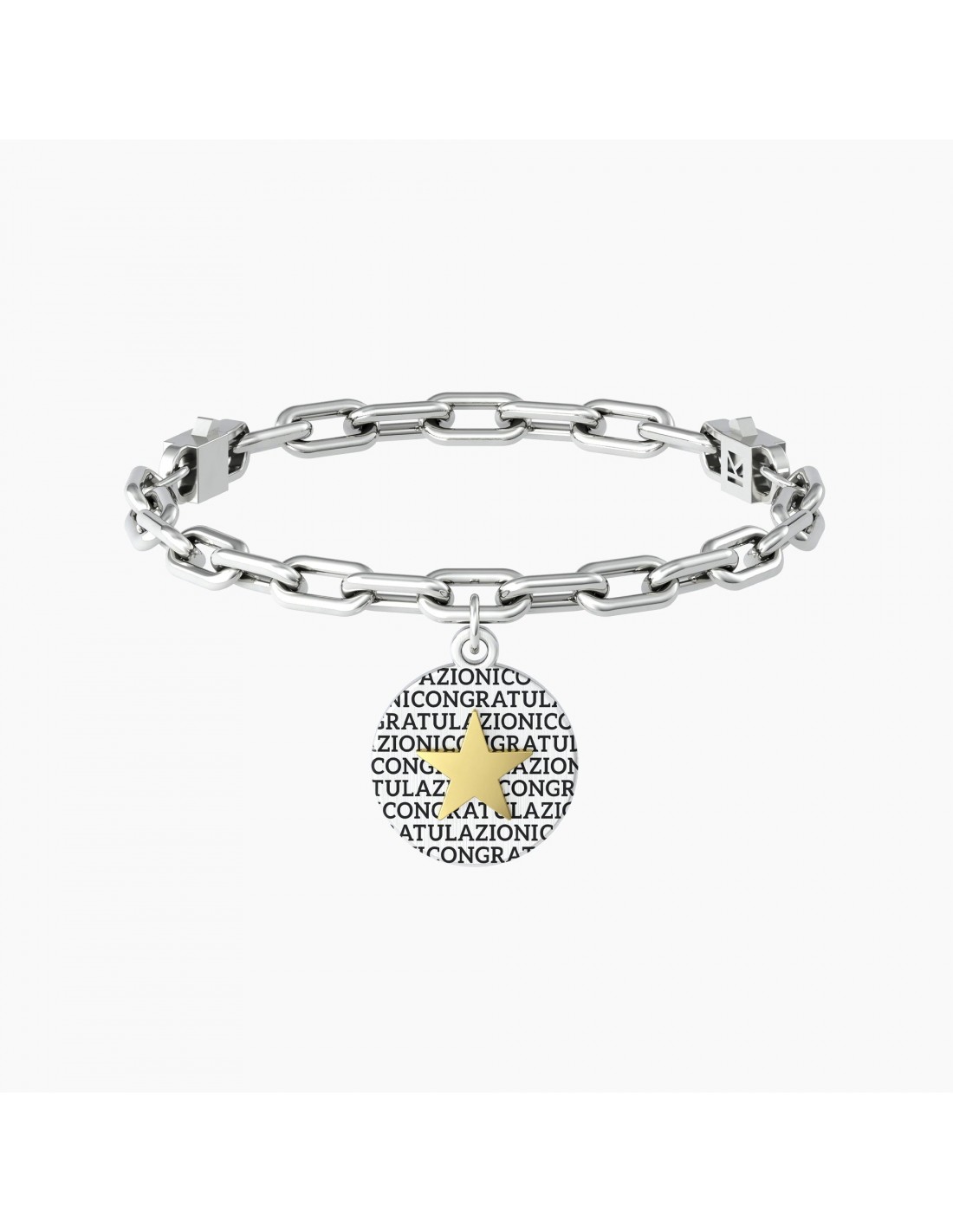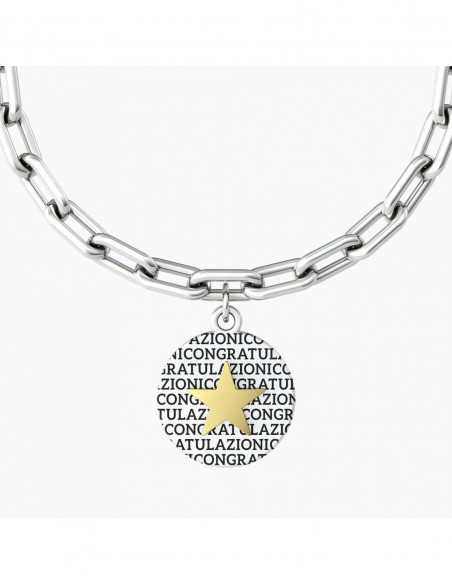 Goditi questo momento, assapora ogni istante. é solo l'inizio del tuo grande futuro! Bracciale in acciaio con catena a maglie ovali "comfort fit" e ciondolo satinato tondo con stella in rilievo color oro giallo.