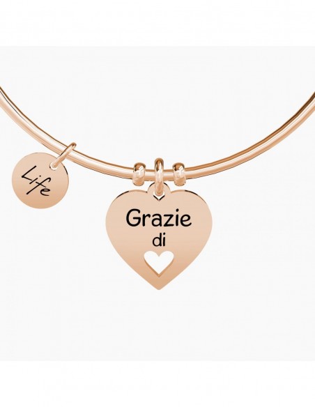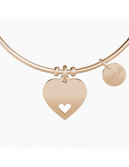 Bangle in acciaio color oro rosa con ciondolo a cuore.
