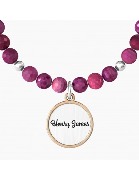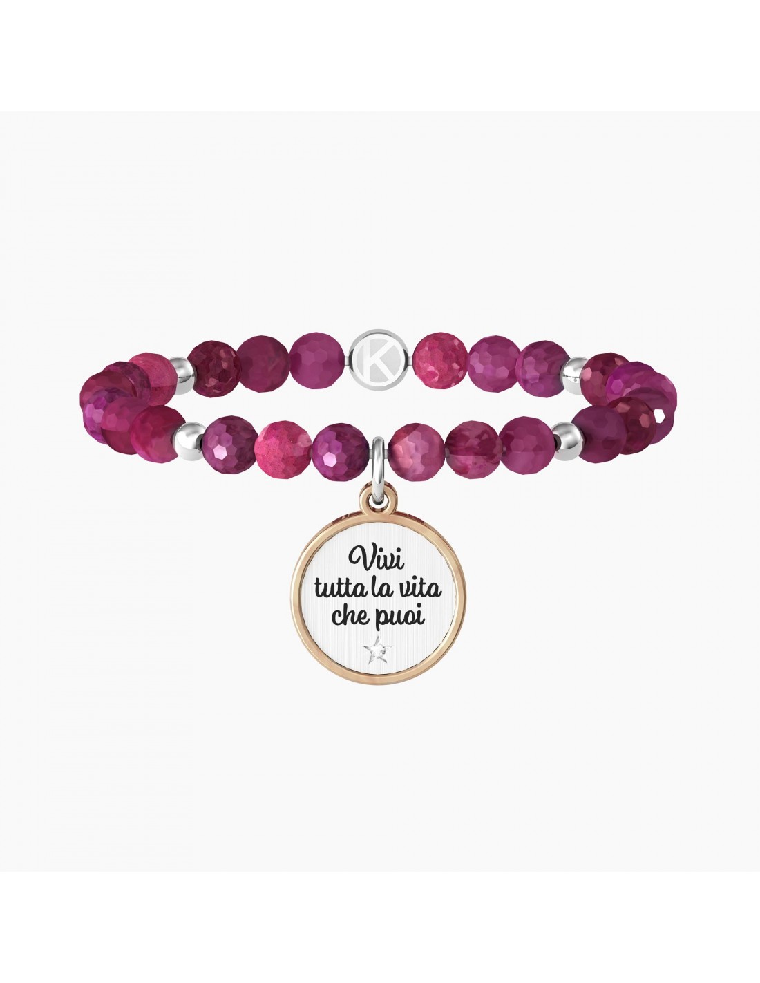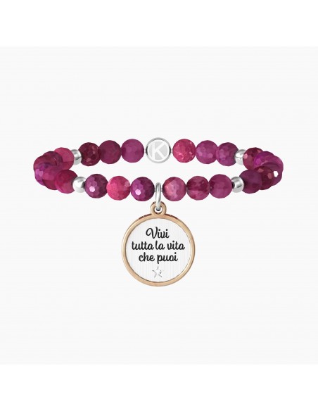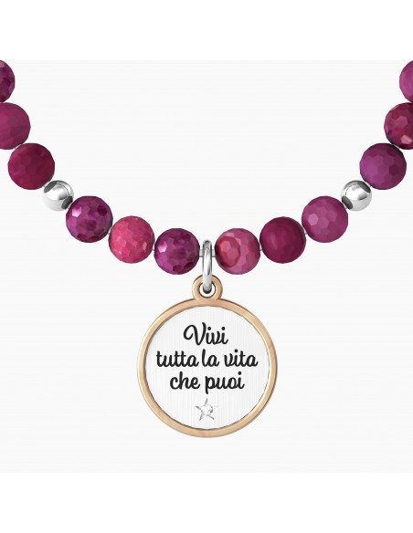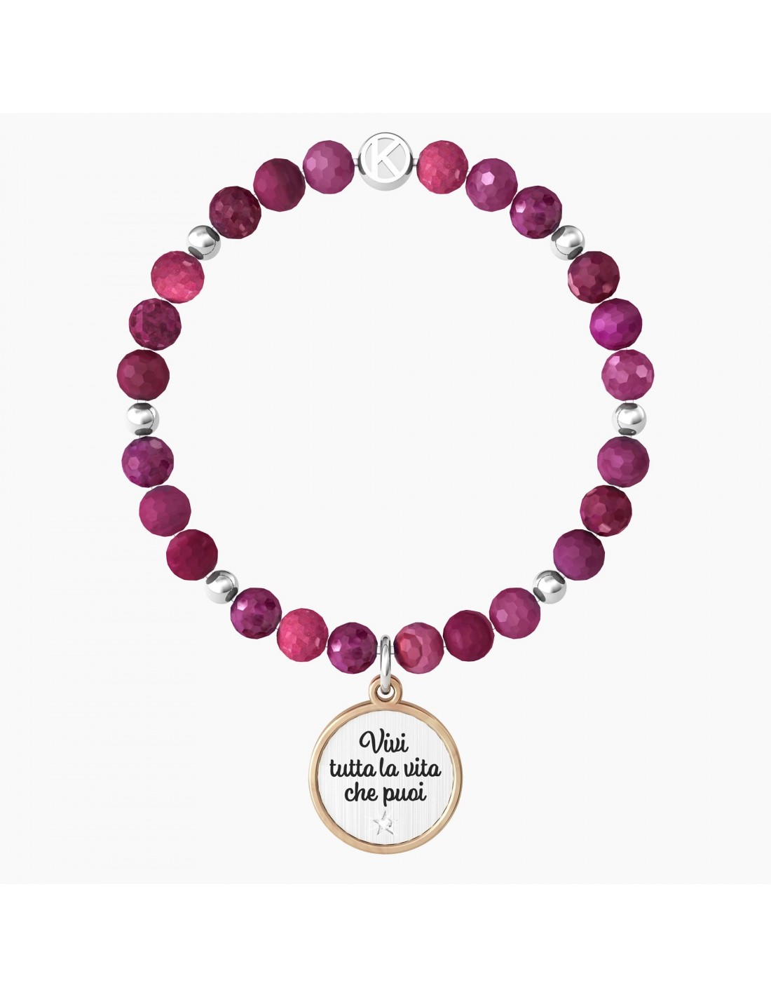 Bracciale Kidult agata fucsia e acciaio 316l con PVD rosè in acciao