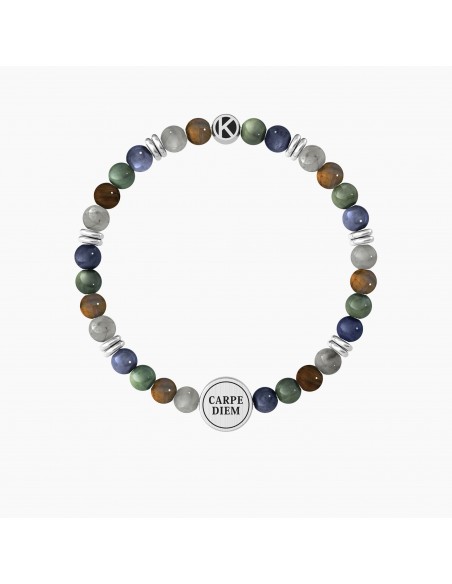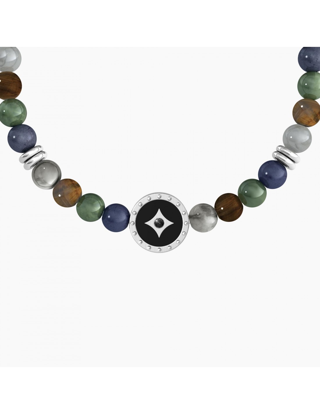 Bracciale Kidult pietre multicolor, in acciaio 316L pvd nero