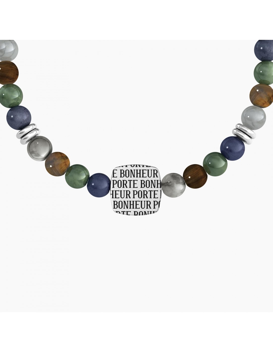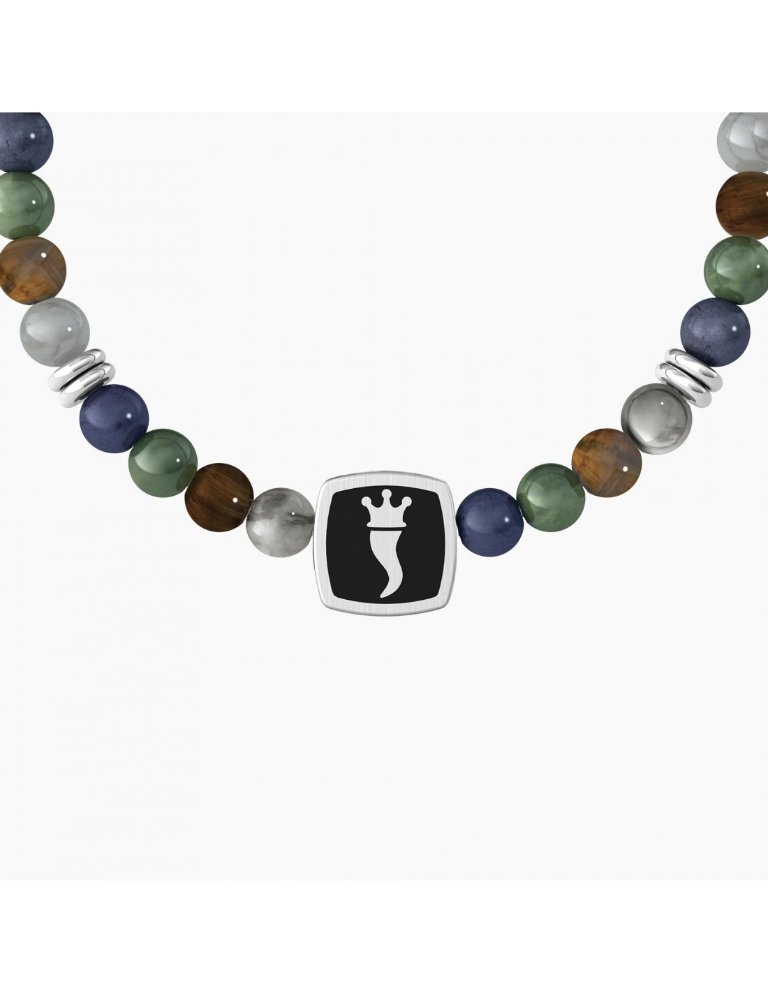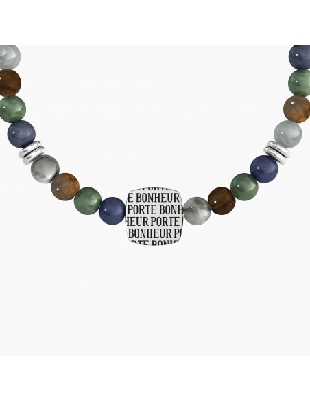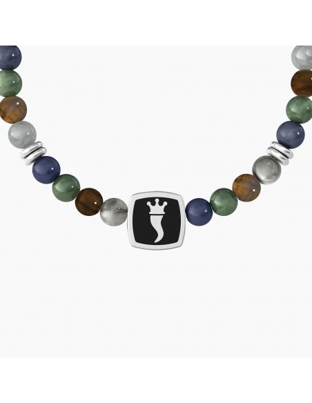 Bracciale Kidult pietre multicolor, in acciaio 316L pvd nero