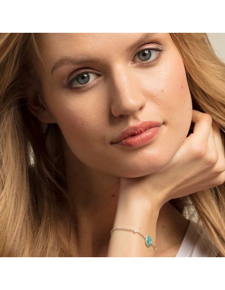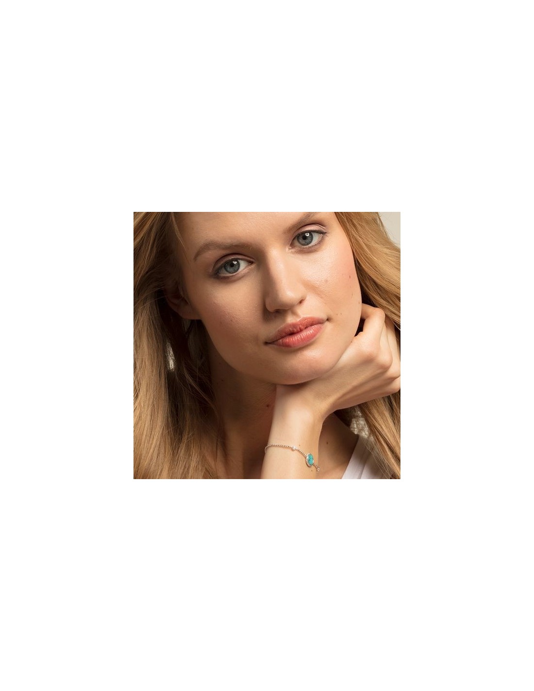 Questo fine bracciale è un must have per tutte le donne che amano lo splendore cristallino del turchese. Con i suoi scintillanti punti luce e la sua elegante leggerezza ci trasporta all’istante in un mondo di cose belle… Oh dolce vita.