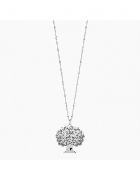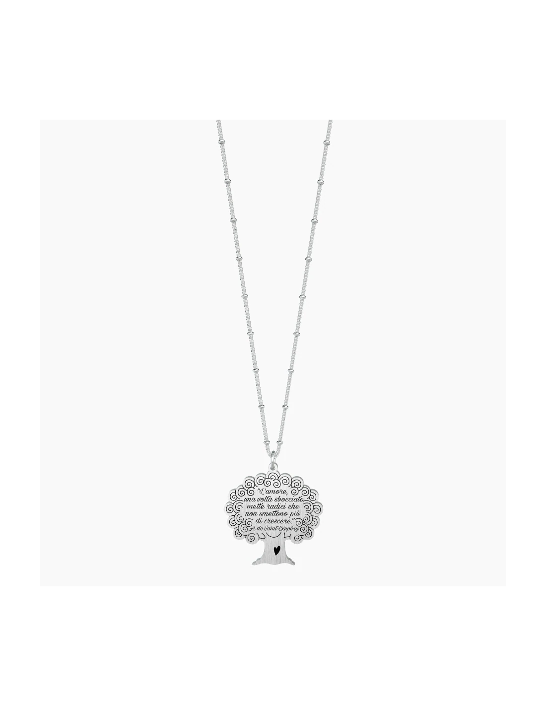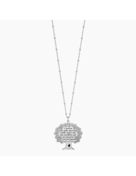 "L'amore, una volta sbocciato mette radici che non smettono pi di crescere." - A. de Saint-ExupŽry - Collana lunga in acciaio con ciondolo satinato a forma di albero e catena groumette con anellini.