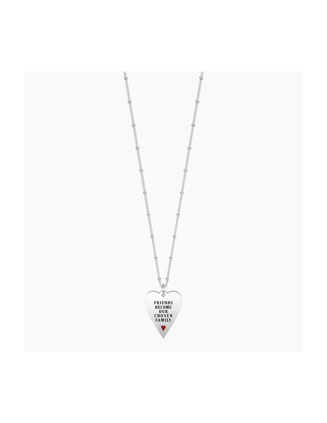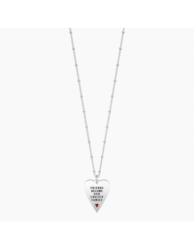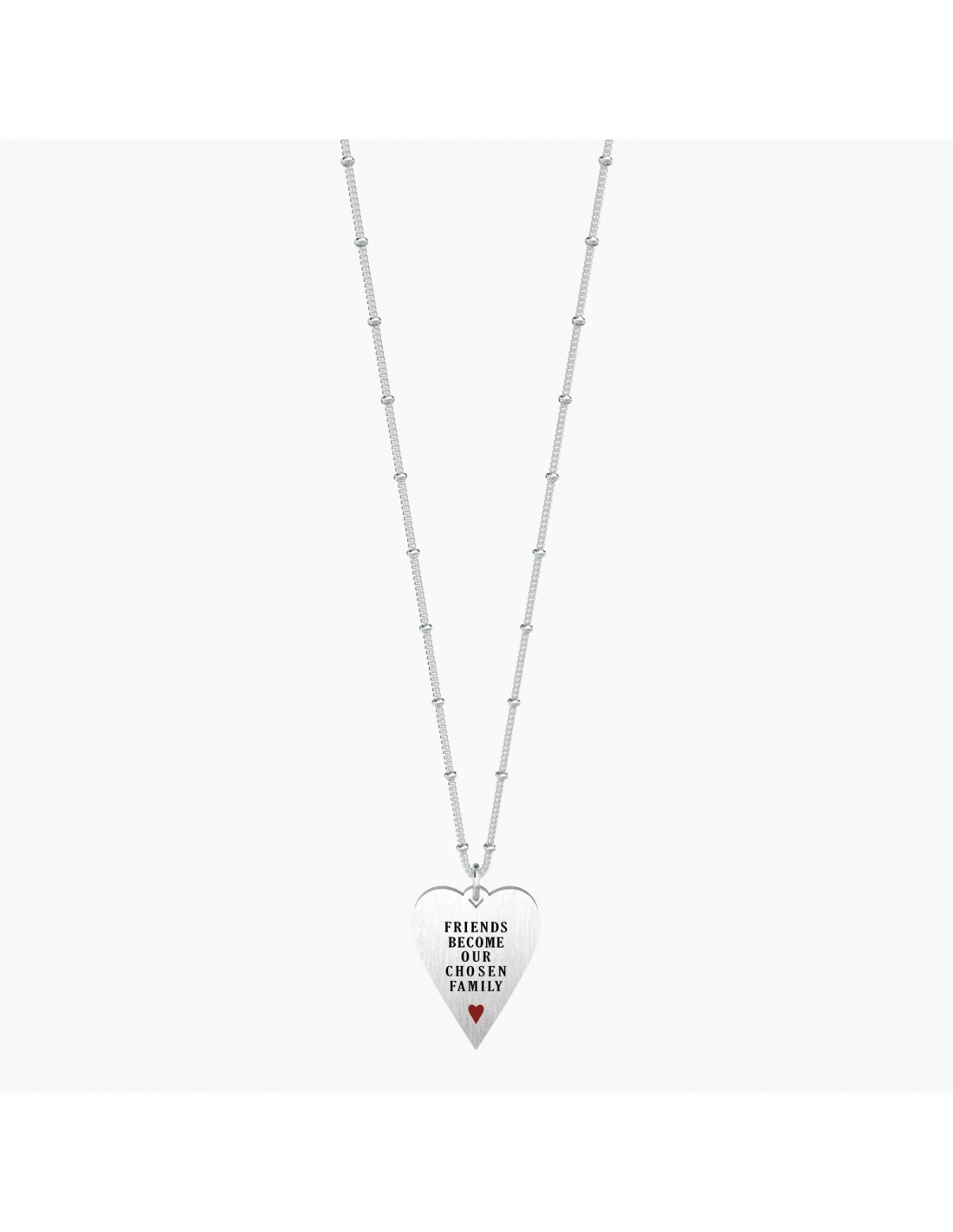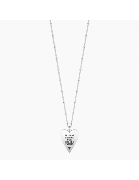 Friends become our chosen family Collana lunga in acciaio con ciondolo satinato a cuore e catena groumette con anellini.