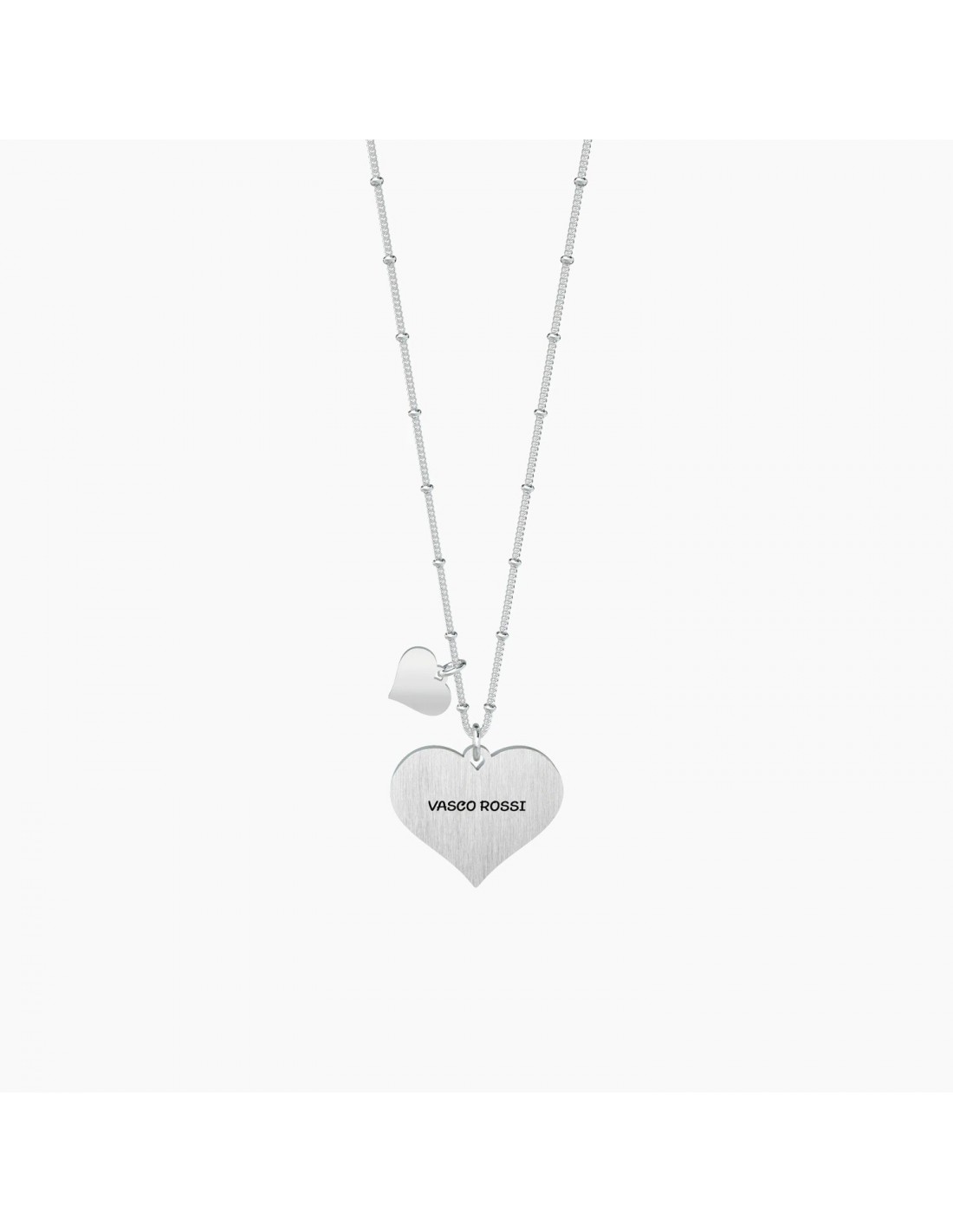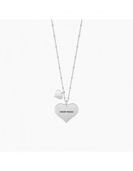 Collana lunga in acciaio con ciondolo satinato a cuore e catena groumette con anellini.