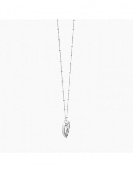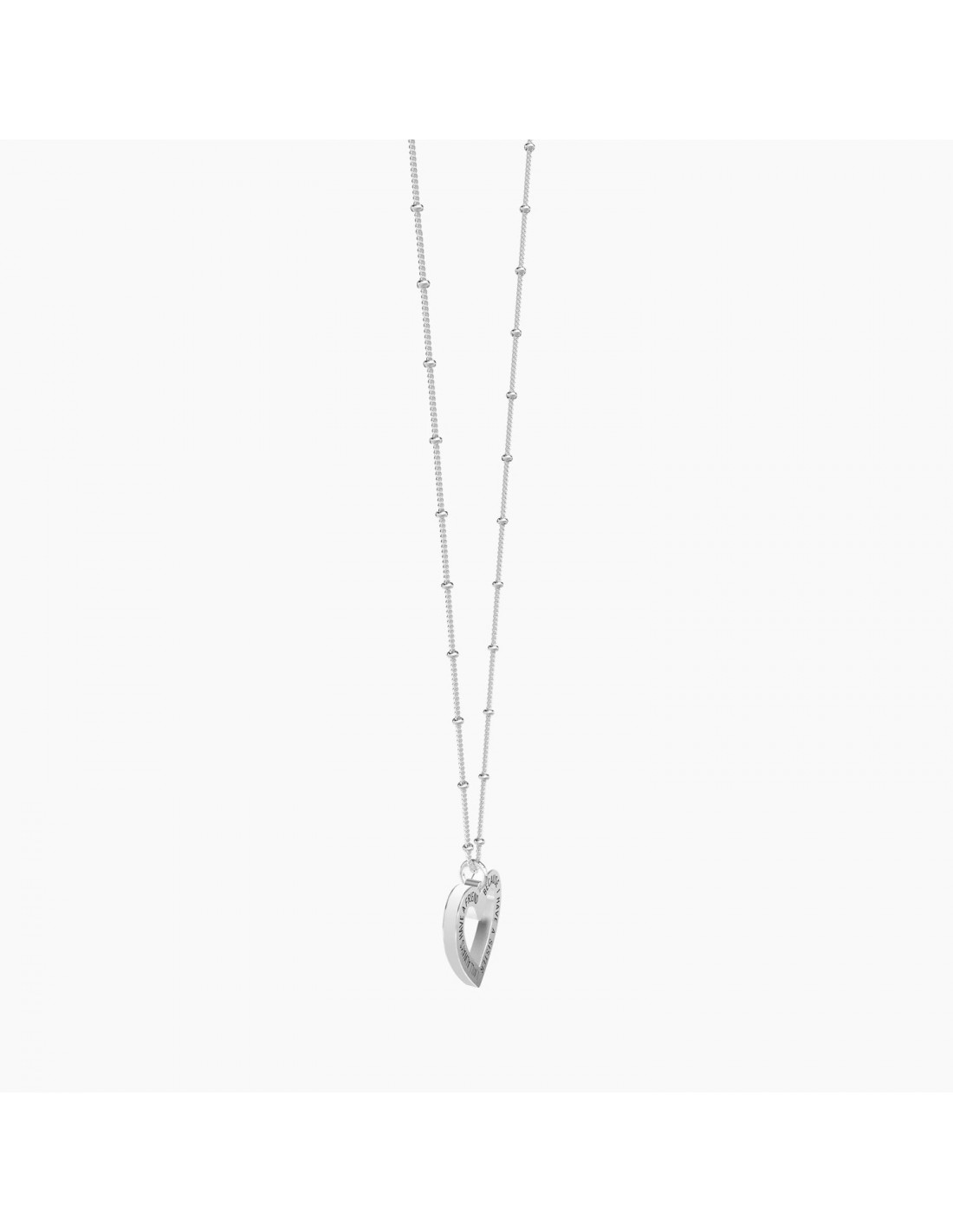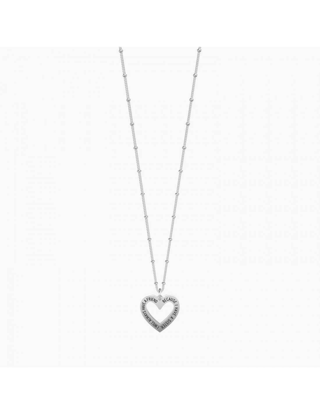 I will always have a friend because I have a sister. Collana di media lunghezza in acciaio con ciondolo satinato a cuore e catena groumette con anellini.