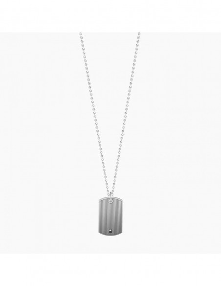 Impara a vincere dalle tue sconfitte. Collana lunga in acciaio con ciondolo satinato a piastrina e catena pallinata.