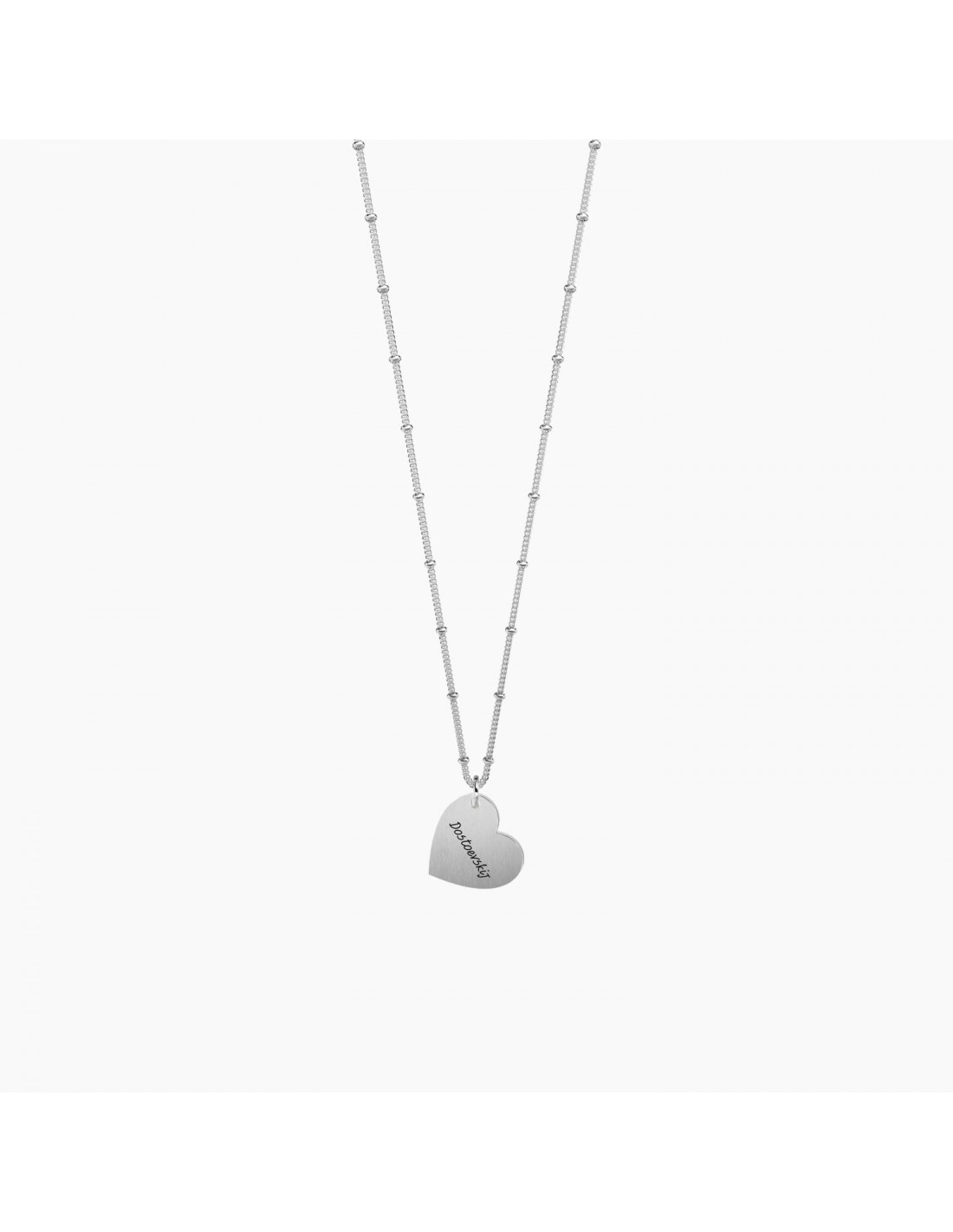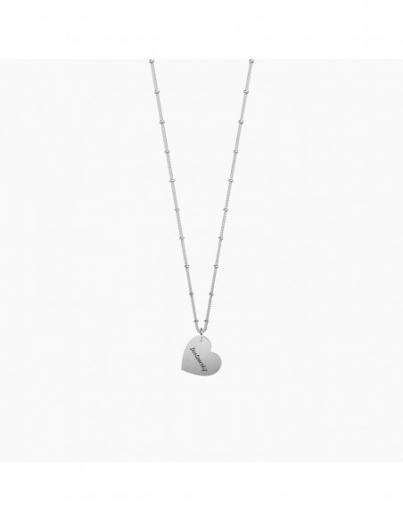 "L'Amore! Ma l'amore  tutto". - Dostoevskij - Collana corta in acciaio con ciondolo satinato a cuore, ciondolo rosŽ a cuore e catena groumette con anellini.