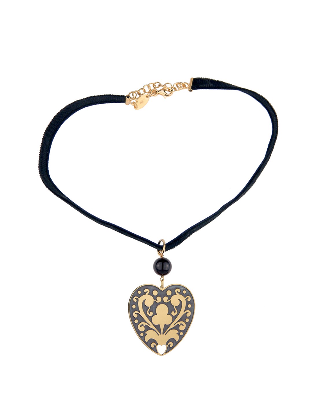 La collezione gotico romantica, realizzata in argento galvanizzato oro e decapato nero, vuole giocare con i due colori ottenuti e mette in evidenza le superfici attraverso linee intrecciate dove si leggono farfalle, cuori e fiori.