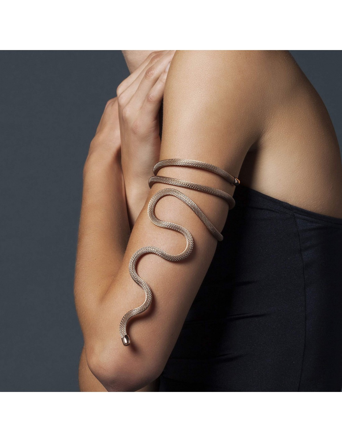 New Snake è un gioiello unico: leggero e flessibile, è caratterizzato da una preziosa maglia metallica in cui scorre un'anima morbida e malleabile, che disegna spire e giochi di luce tutti da modellare.