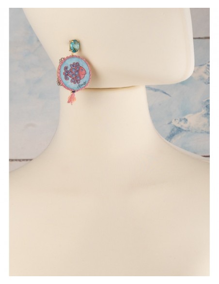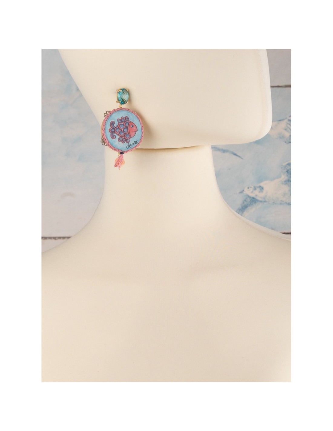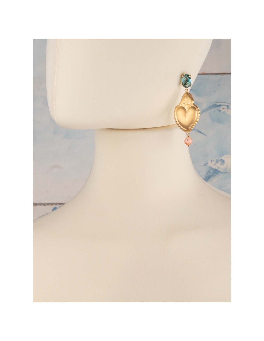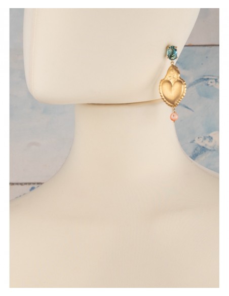 Orecchini Amlè con tamburello e cuore ex voto in argento