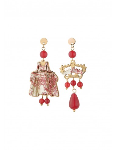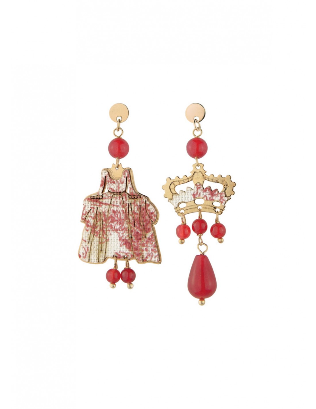 I tre soggetti usati per i nuovi orecchini richiamano immagini tipiche settecentesche: la dama che simboleggia la Regina o una dama di corte che indossa l’abito tipico di quel periodo, la corona che rappresenta il Re e la croce che richiama l’aristocrazia e comunque tutta la simbologia tipica di quel periodo.