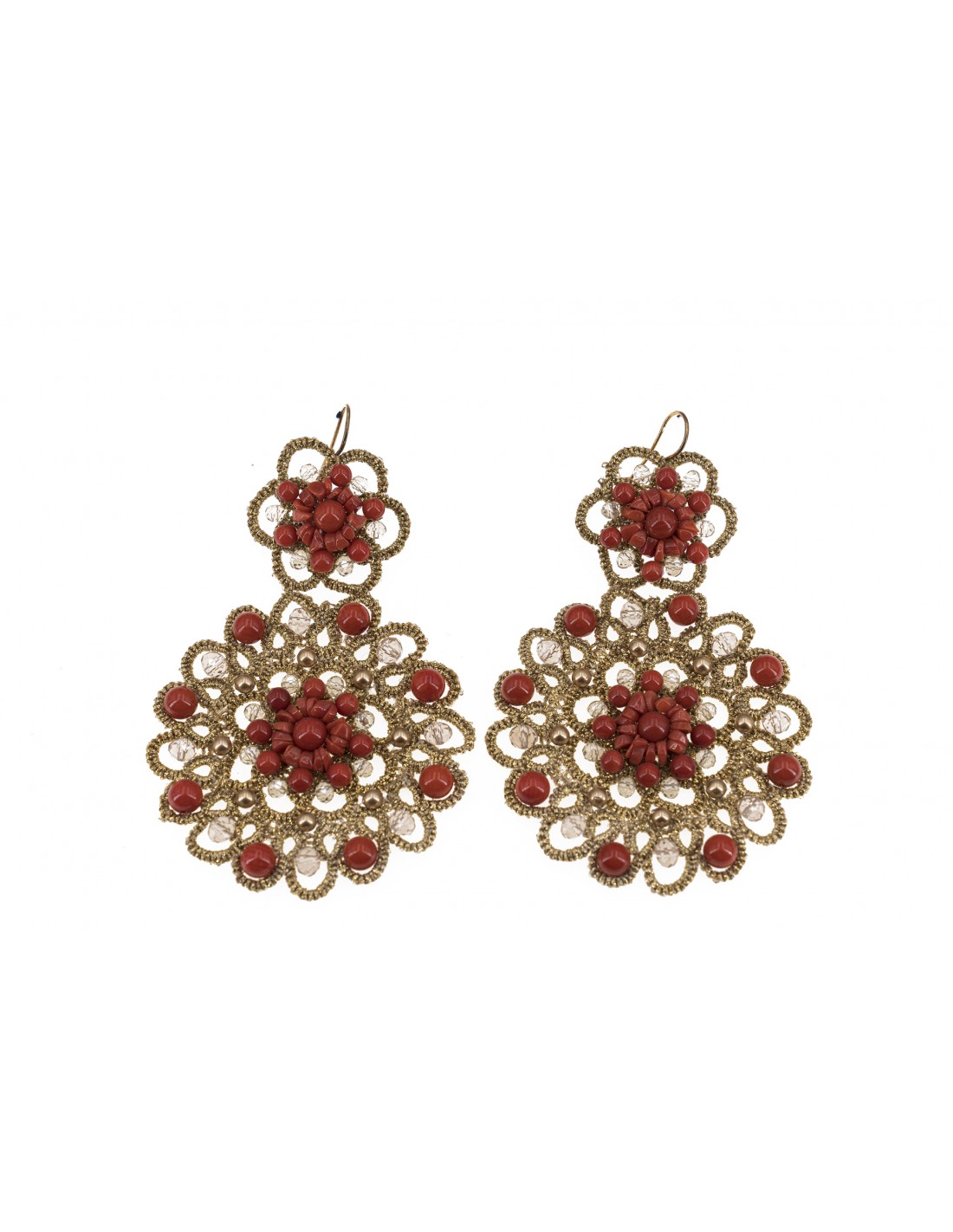 Orecchini prodotti da Paola Parrinelloin pizzo corallo e pietre
