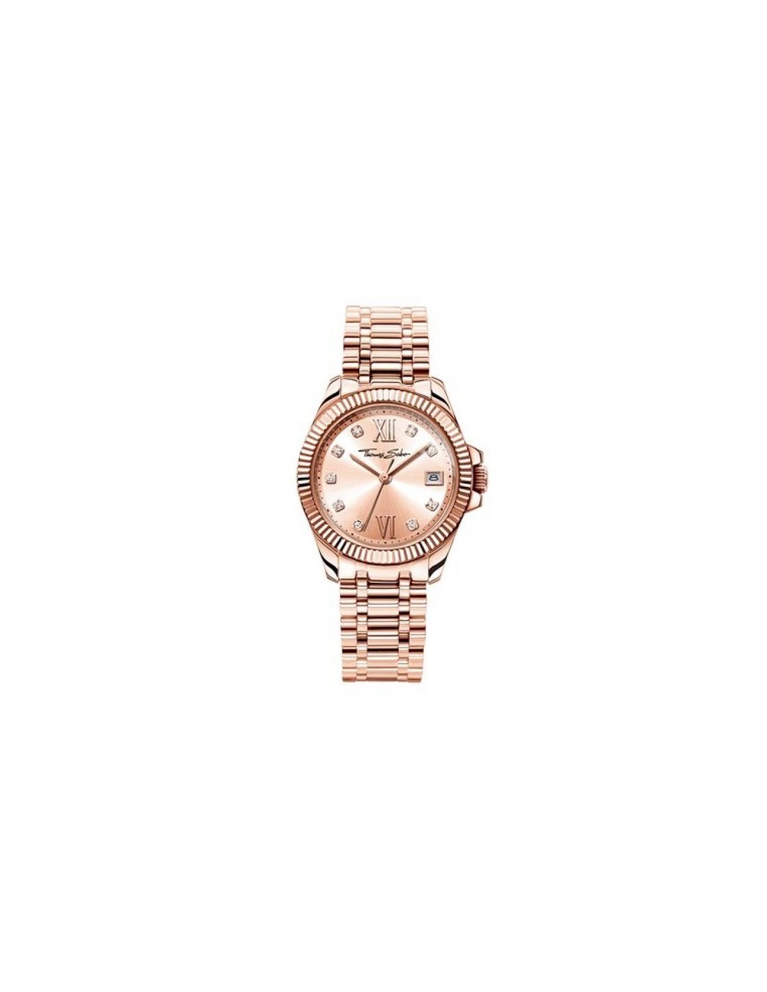 protagonista di classe! Con l’espressiva lunetta griffata THOMAS SABO e il raffinato quadrante nei toni più discreti dell’oro rosa, questo modello nel colore tendenza oro rosa abbina il design più classico con il cromatismo più in voga della stagione. Un segnatempo all'ultimo grido, il compagno ideale di ogni look, da classico a stravagante.