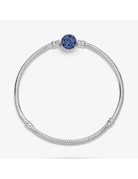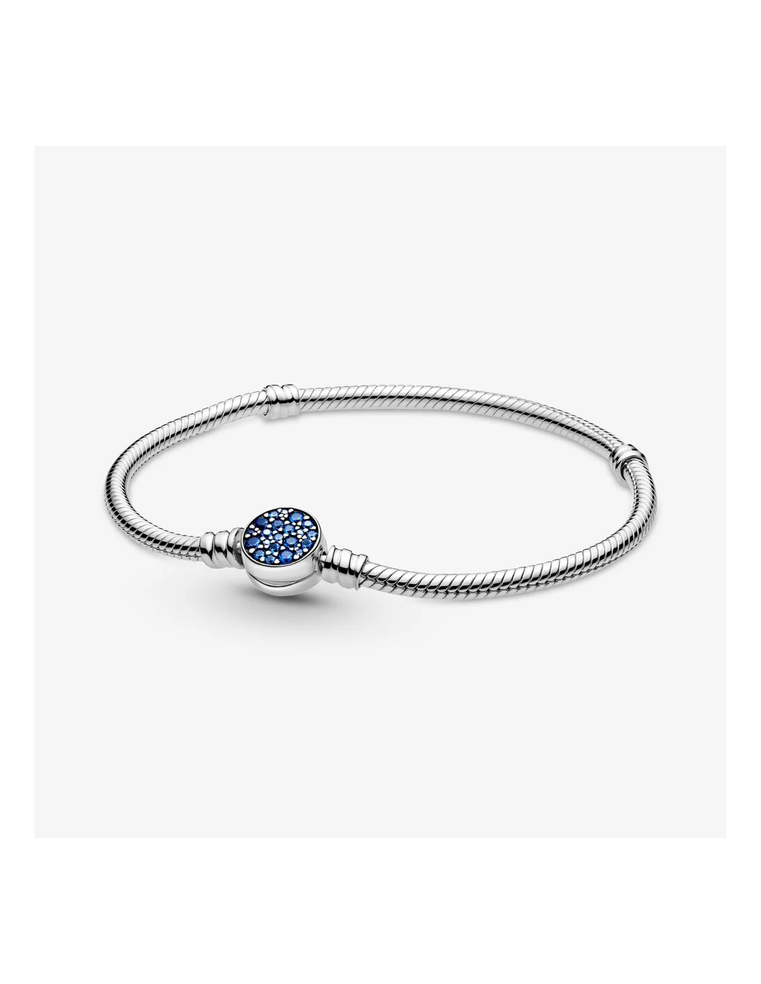 Bracciale Pandora Moments con maglia snake e chiusura a disco blu scintillante