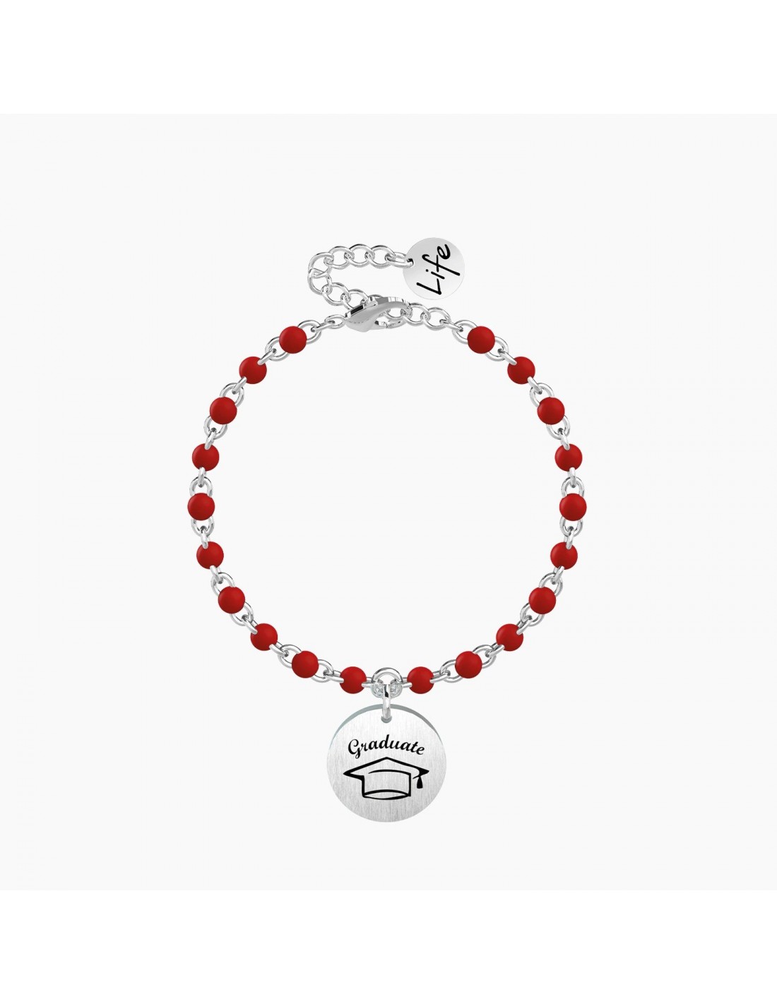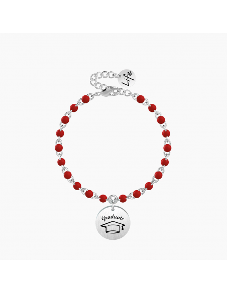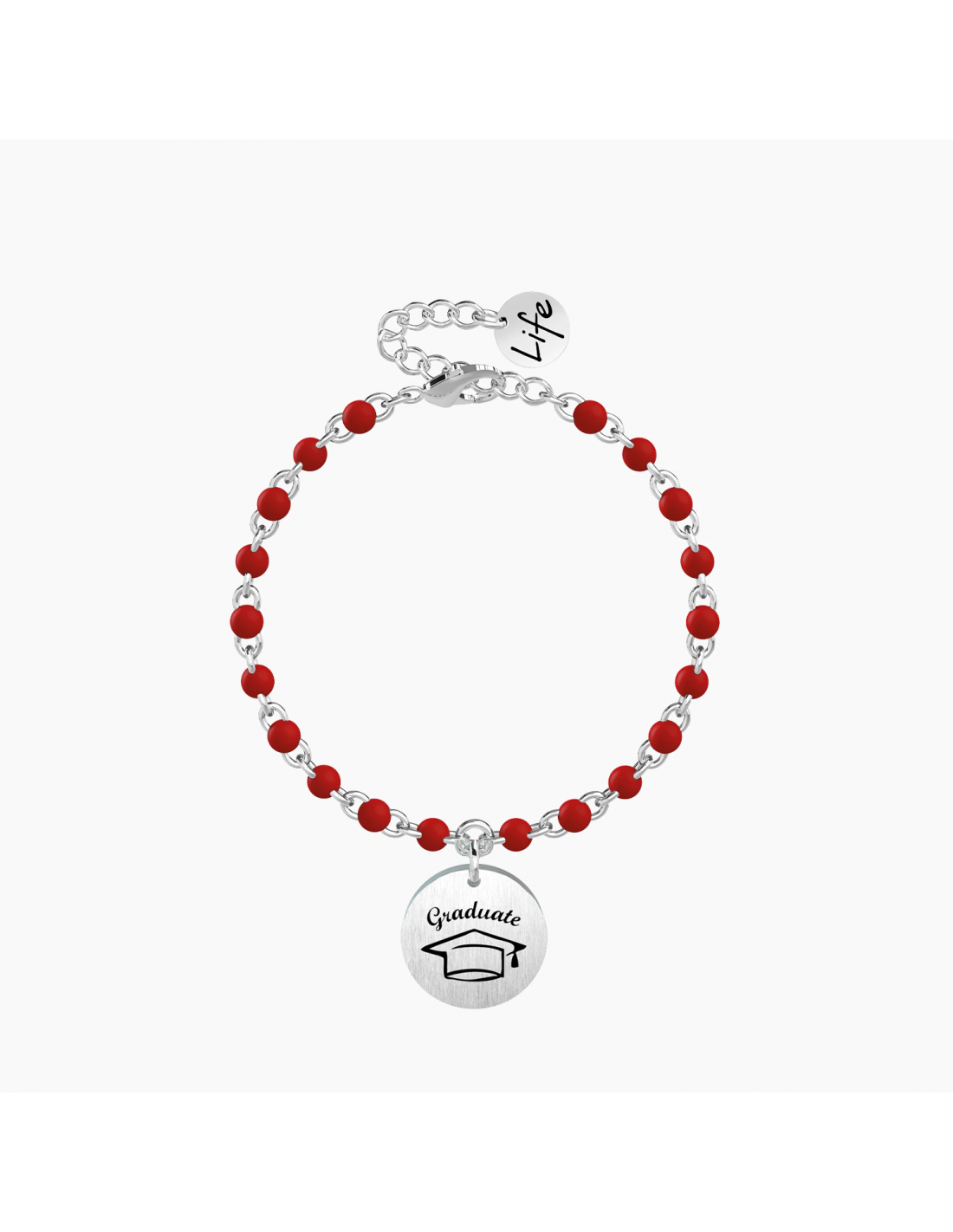 Hai raggiunto un traguardo fondamentale, ora la bellezza del tuo futuro dipende dalla grandezza dei tuoi sogni. Inseguili, perchŽ un grande successo ti aspetta all'orizzonte. Congratulazioni! Bracciale in acciaio con ciondolo satinato tondo e catena rol˜ con inserimenti in smalto rosso.
