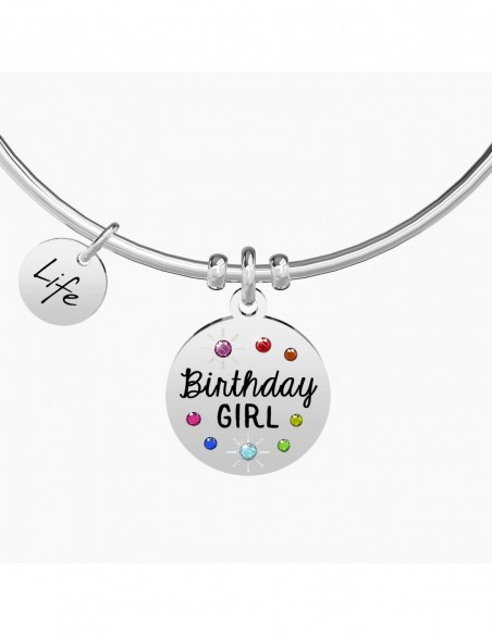 Bangle in acciaio con ciondolo tondo con cristalli colorati e applicazioni smaltate.
