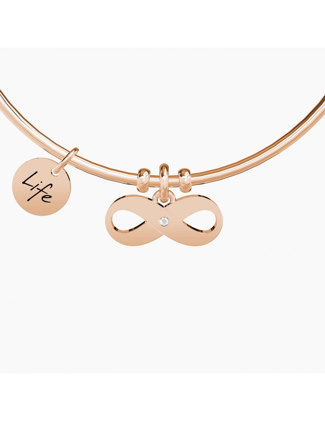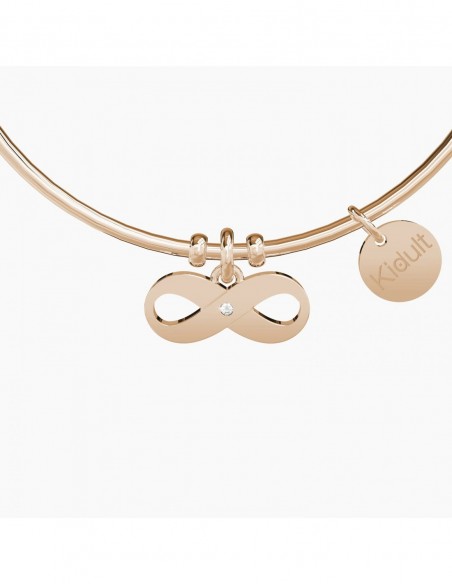 I sentimenti che hai dentro non si contano, come le emozioni che regali a chi ti sta accanto. Un regalo per te, che ami l'infinita bellezza della vita. Bangle in acciaio color oro rosa con ciondolo Infinito.