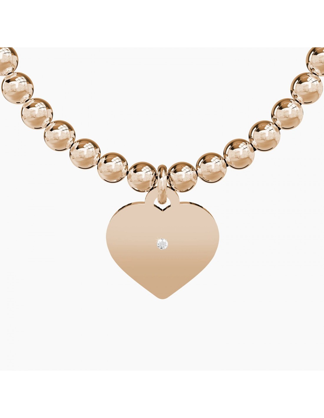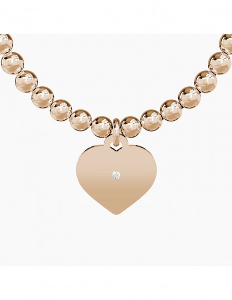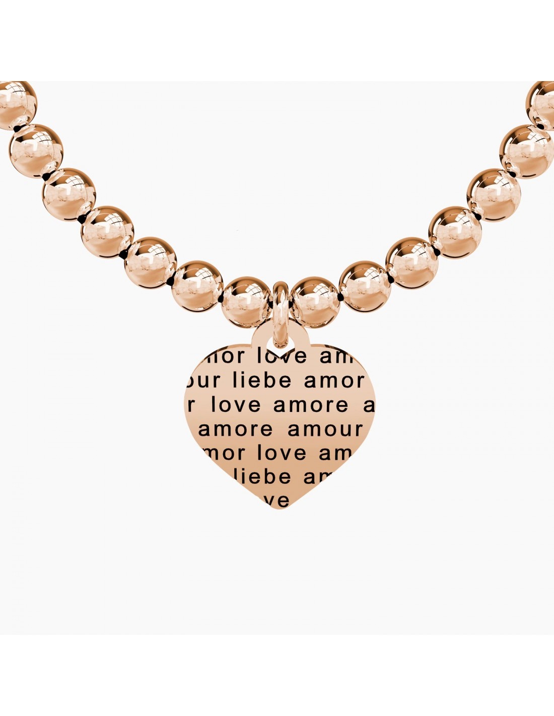 Amore - Liebe - Amor - Love - Amour Bracciale elastico con sfere in acciaio color oro rosa e ciondolo Cuore.