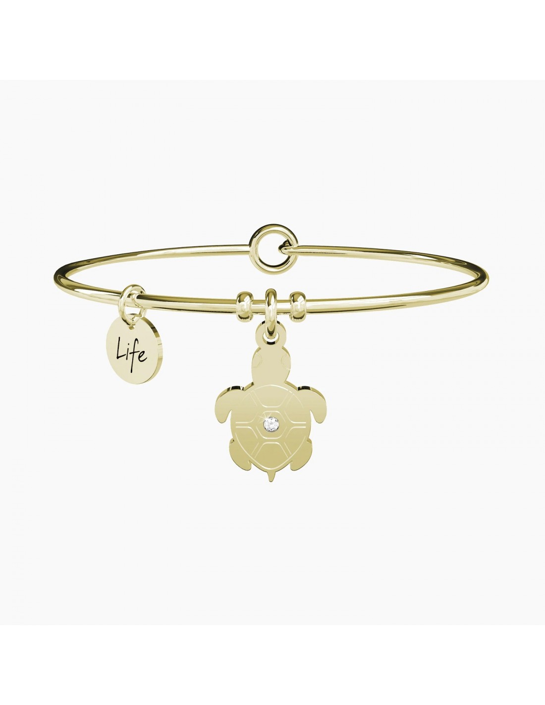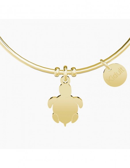 Nuota senza fretta in acqua e cammina lenta sulla terra: ha scoperto come allungare le stagioni della vita e accorciare la distanza dalla conoscenza. Tienila con te e illuminerˆ il tuo cammino, passo dopo passo. Bangle in acciaio color oro giallo con ciondolo Tartaruga.