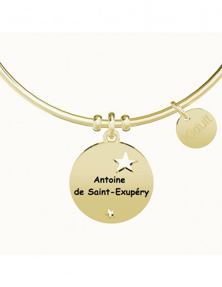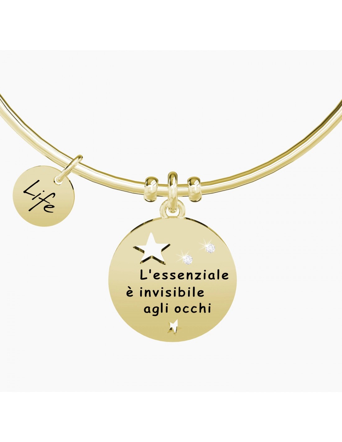 Bangle in acciaio color oro giallo con ciondolo tondo.