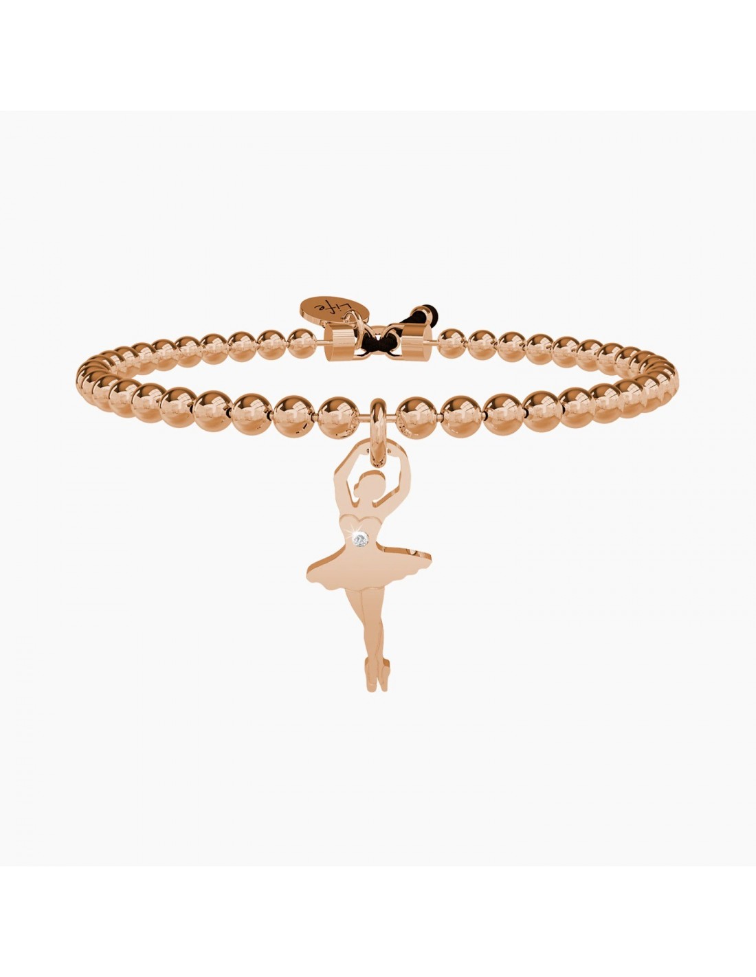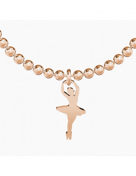 Sulle punte leggera e sensuale che sembri volare, danzi magica e meravigliosa come ogni giorno della tua vita! Bangle con filo armonico, sfere in acciaio color oro rosa e ciondolo Ballerina.