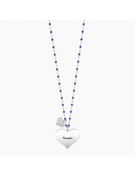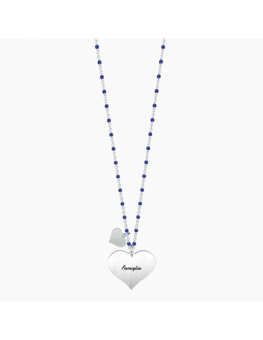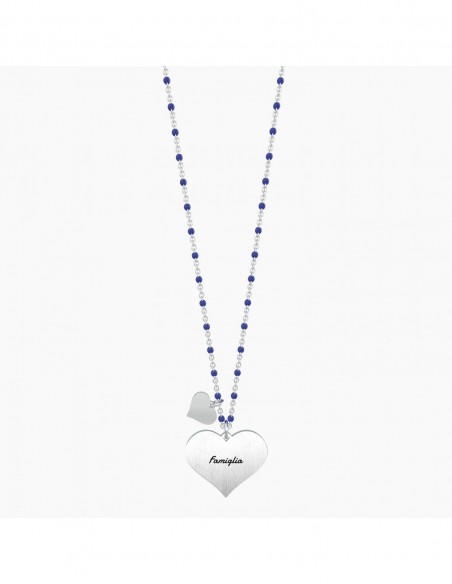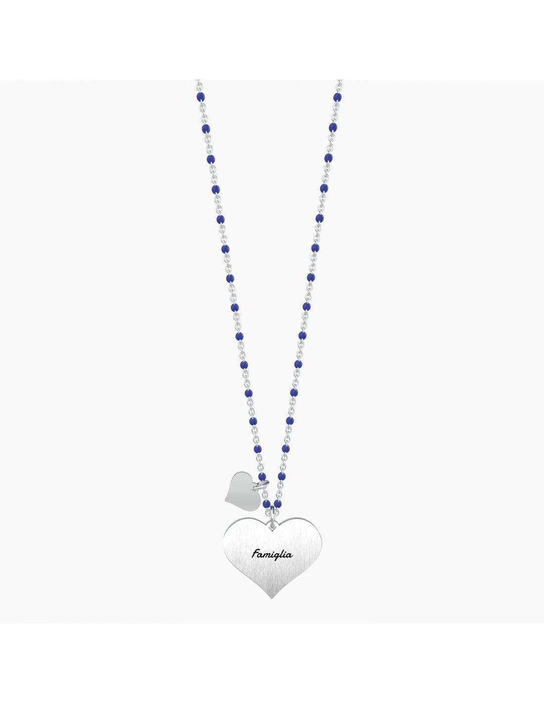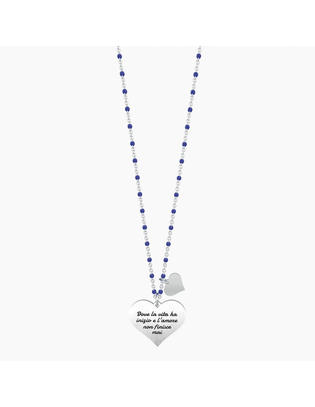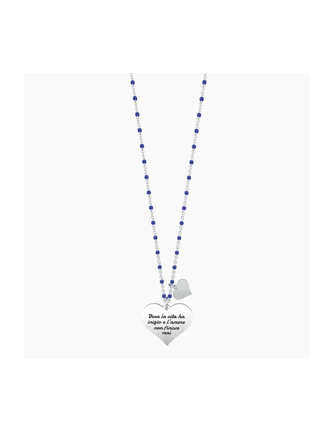 Dove la vita ha inizio e l'amore non finisce mai Collana lunga in acciaio con ciondolo satinato a cuore e catena rol˜ con inserimenti in smalto blu.