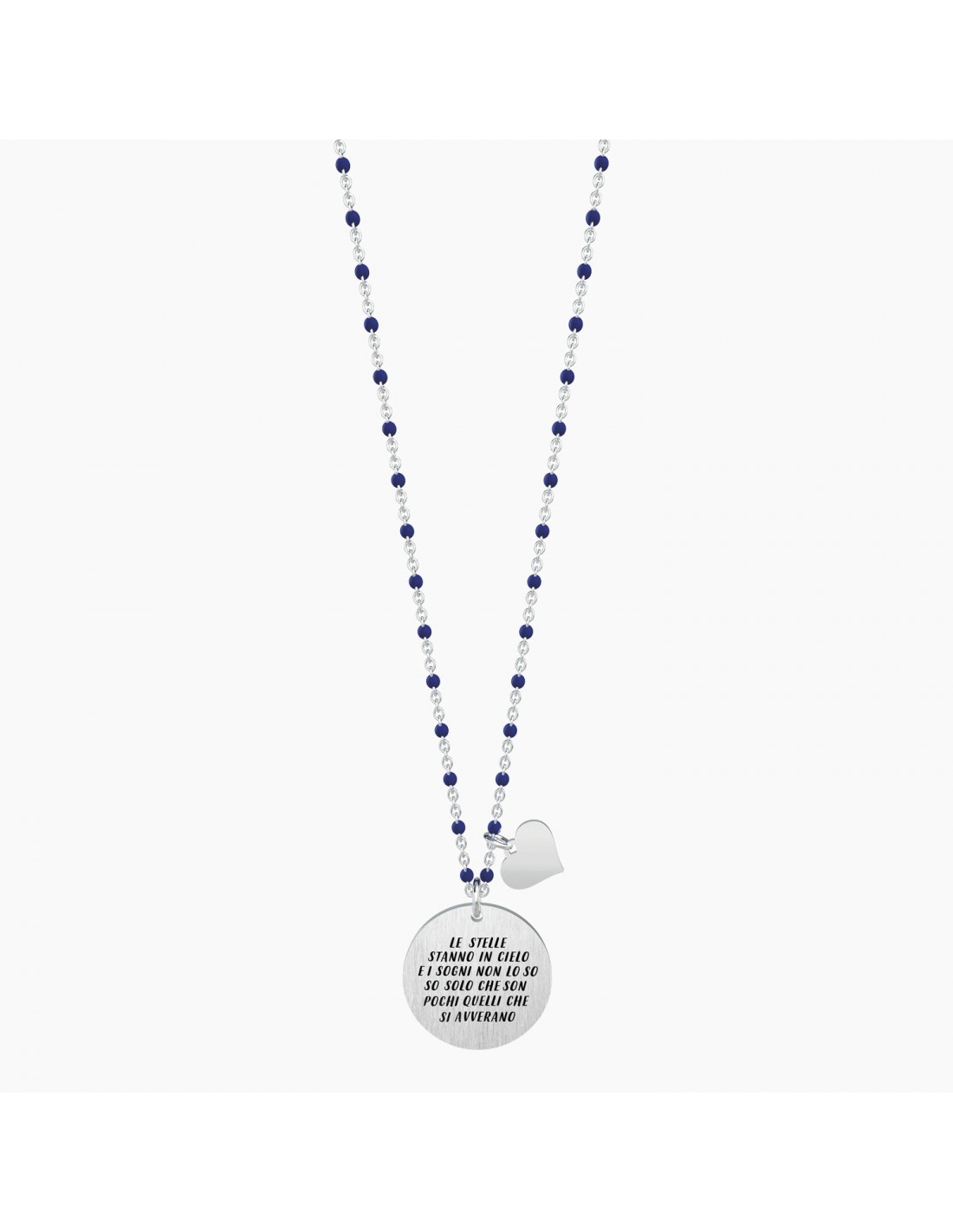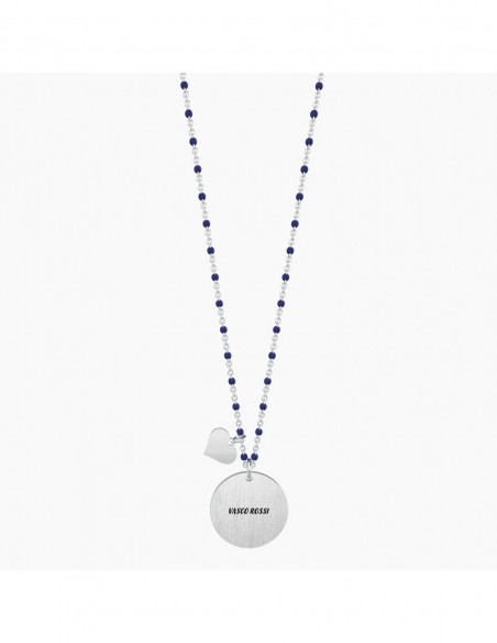 Vasco Rossi Official Collection Le stelle stanno in cielo e i sogni non lo so so solo che son pochi quelli che si avverano Vasco Rossi Collana lunga in acciaio con ciondolo satinato tondo e catena rol˜ con inserimenti in smalto blu.