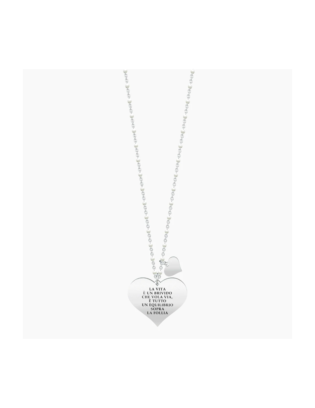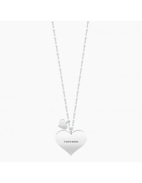 Vasco Rossi Official Collection La vita un brivido che vola via, tutto un equilibrio sopra la follia Vasco Rossi Collana lunga in acciaio con ciondolo satinato a cuore e catena rol con inserimenti in smalto bianco.