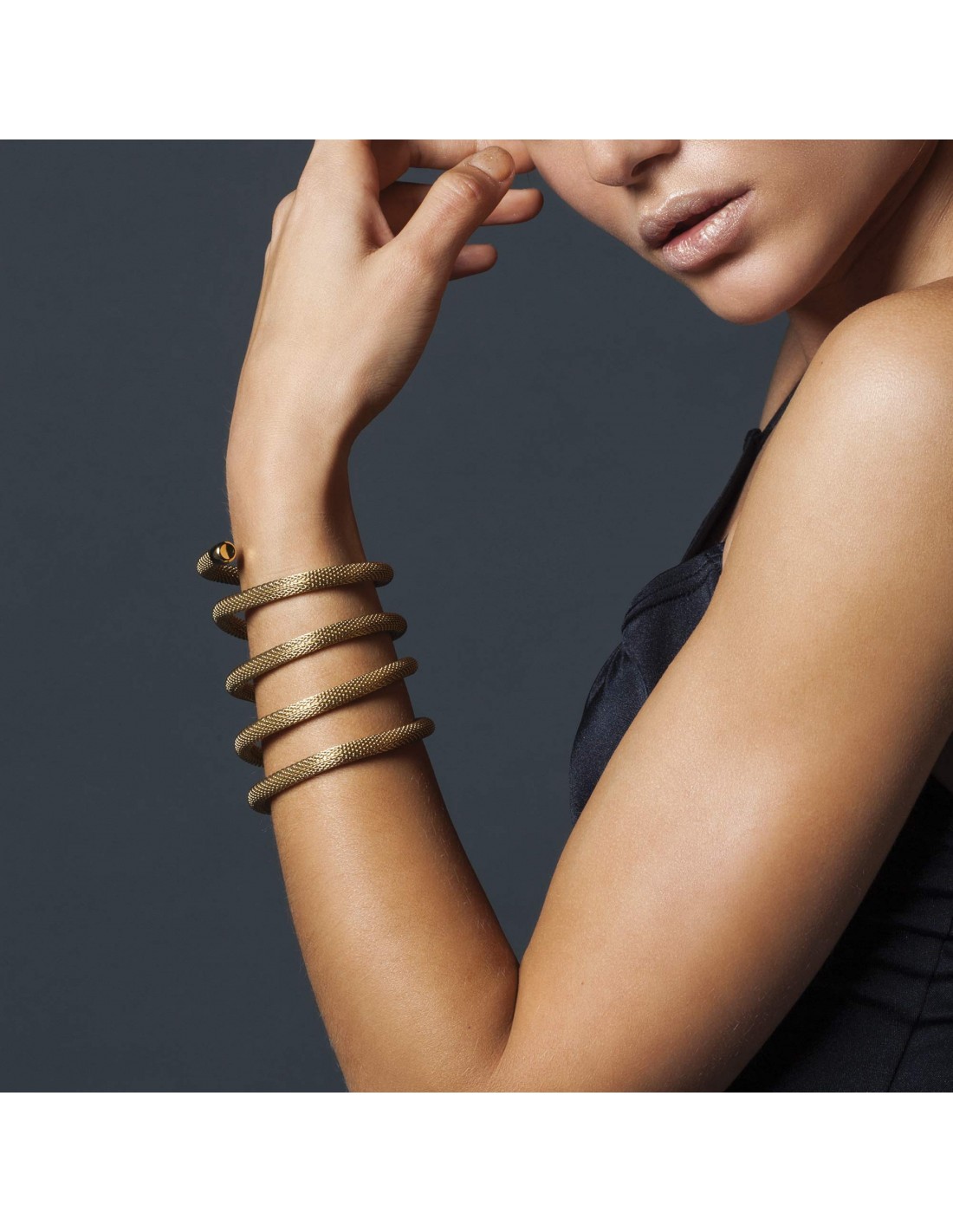 New Snake è un gioiello unico: leggero e flessibile, è caratterizzato da una preziosa maglia metallica in cui scorre un'anima morbida e malleabile, che disegna spire e giochi di luce tutti da modellare.