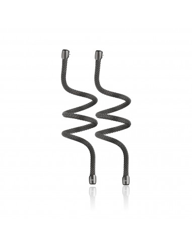 Maglia in acciaio lucido, modellabile nell'indosso, con terminali personalizzati in acciaio lucido con trattamento IP black. Lunghezza totale 20 cm.