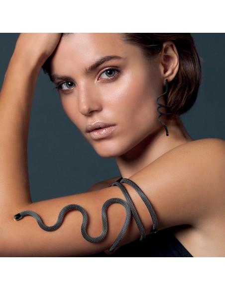 Gli orecchini New Snake sono realizzati in acciaio: leggeri e flessibili, sono caratterizzati da una preziosa maglia metallica in cui scorre un'anima morbida e malleabile, che disegna spire e giochi di luce che illuminano il viso.