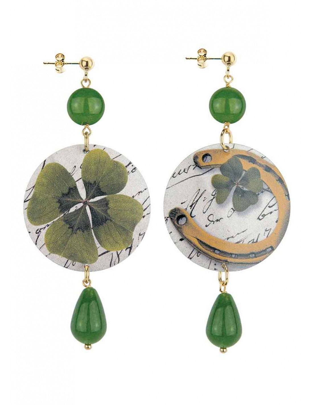 Orecchino Quadrifoglio Verde Oliva Lebole collezione Good Luck