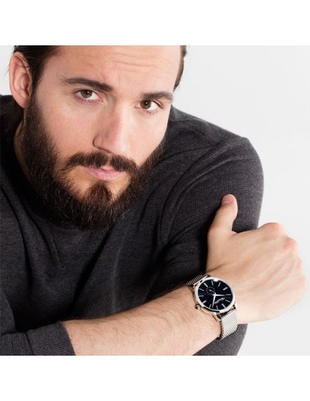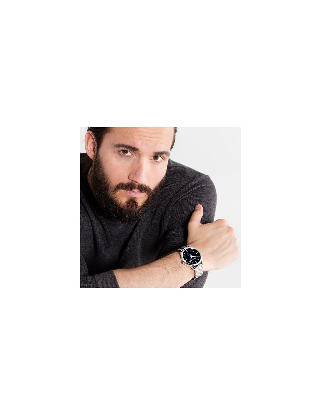 Categoria Orologio da uomo. Materiale Acciaio. Pietre onice. Colore argentato, nero. Chiusura scorrevole regolabile. Cassa/lunetta acciaio, corona con onice. Quadrante/lancette 3 Lancette, quadrante nero specchiato spazzolato soleil. Vetro minerale temprato antiriflesso con rivestimento in zaffiro. Funzioni ore, minuti, piccoli secondi. Bracciale in maglia milanese. Impermeabilità 5 ATM. Movimento MIYOTA 1L45 (Quarz). Diametro appross. 4,20 cm. Larghezza cinturino appross. 2,00 cm. Altezza cassaa ppross. 0,90 cm. Codice articolo WA0152-201-203.